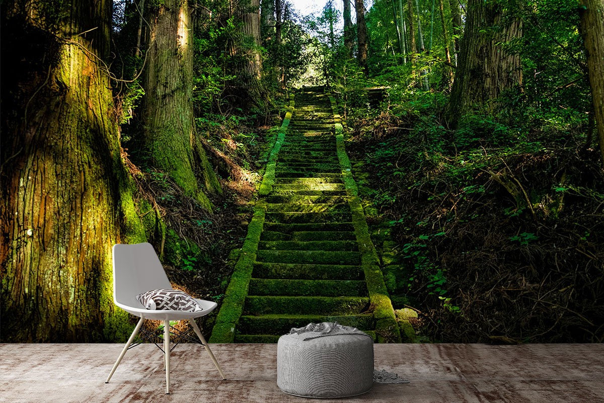 Step Forest Seasons Green Wallpaper Mural,Self-Adhesive Peel And Stick 3D Wall Art,Designer Bedroom Wall Decor
