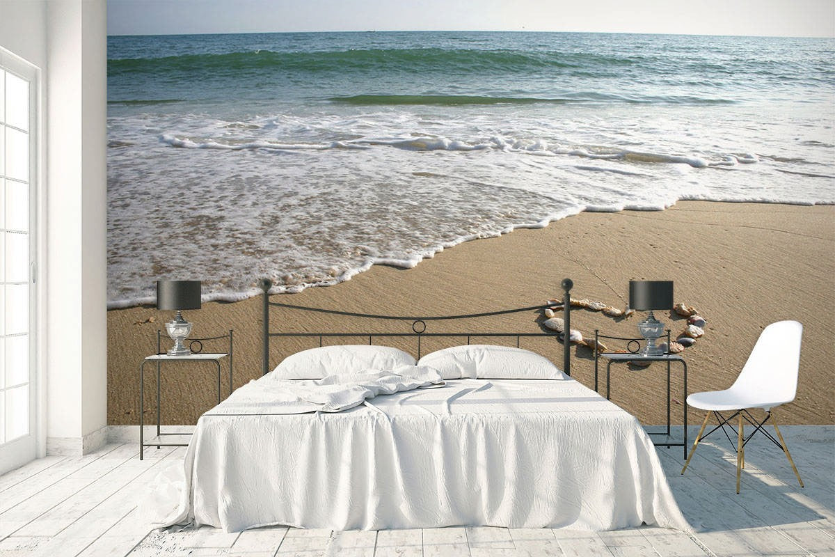 Stone Waves Beach Blue Wallpaper Mural,Self-Adhesive Peel And Stick 3D Wall Paper,Designer Australian Company Wall Decor