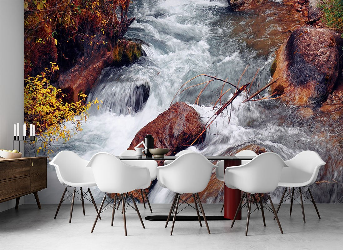 Stream Autumn Nature Rivers Brown Wallpaper Mural,Self-Adhesive Peel And Stick 3D Wall Decal,Bedroom Designer Wall Decor