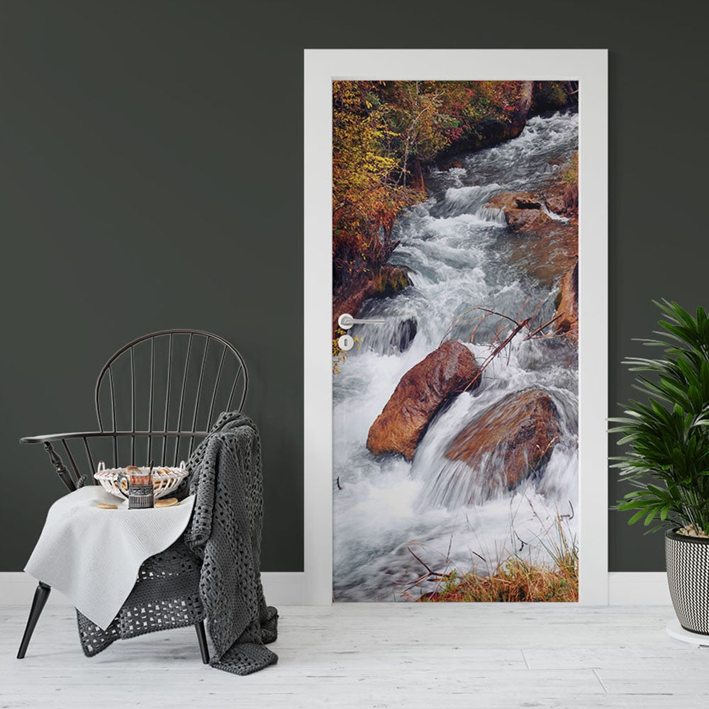 Stream Autumn Nature Rivers & Lakes Door Wrap, Customized Mural For Door, Door Mural Sticker, Peel And Stick Door Cover, Removable Door Decal