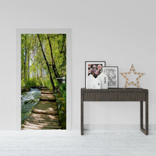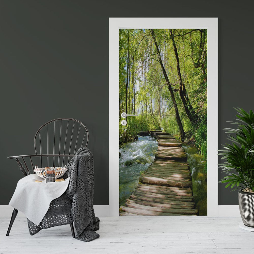 Stream Boardwalk Forest Seasons Door Wrap, Customized Mural For Door, Door Mural Sticker, Peel And Stick Door Cover, Removable Door Decal
