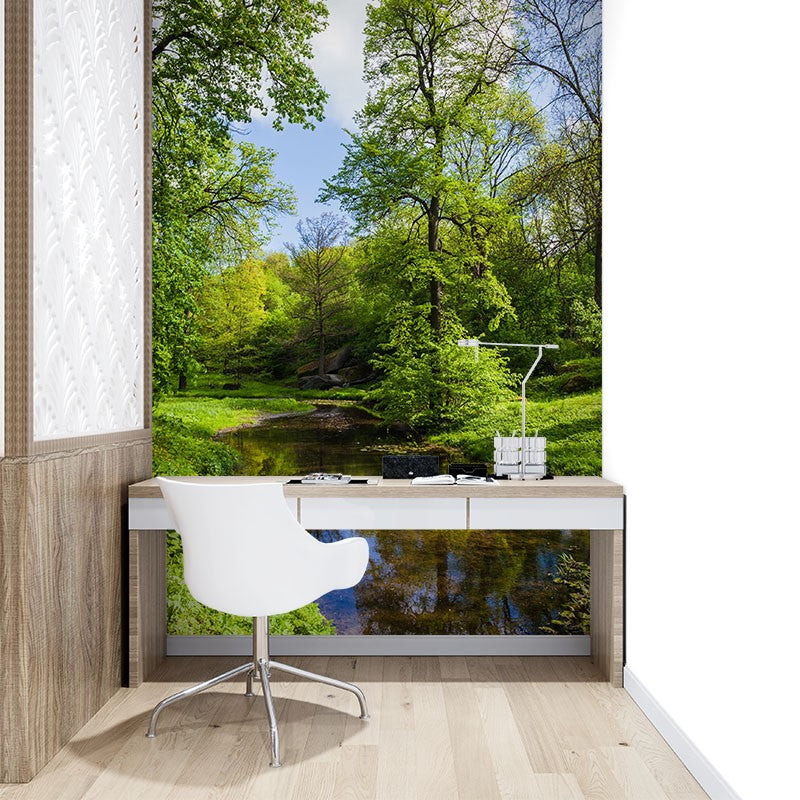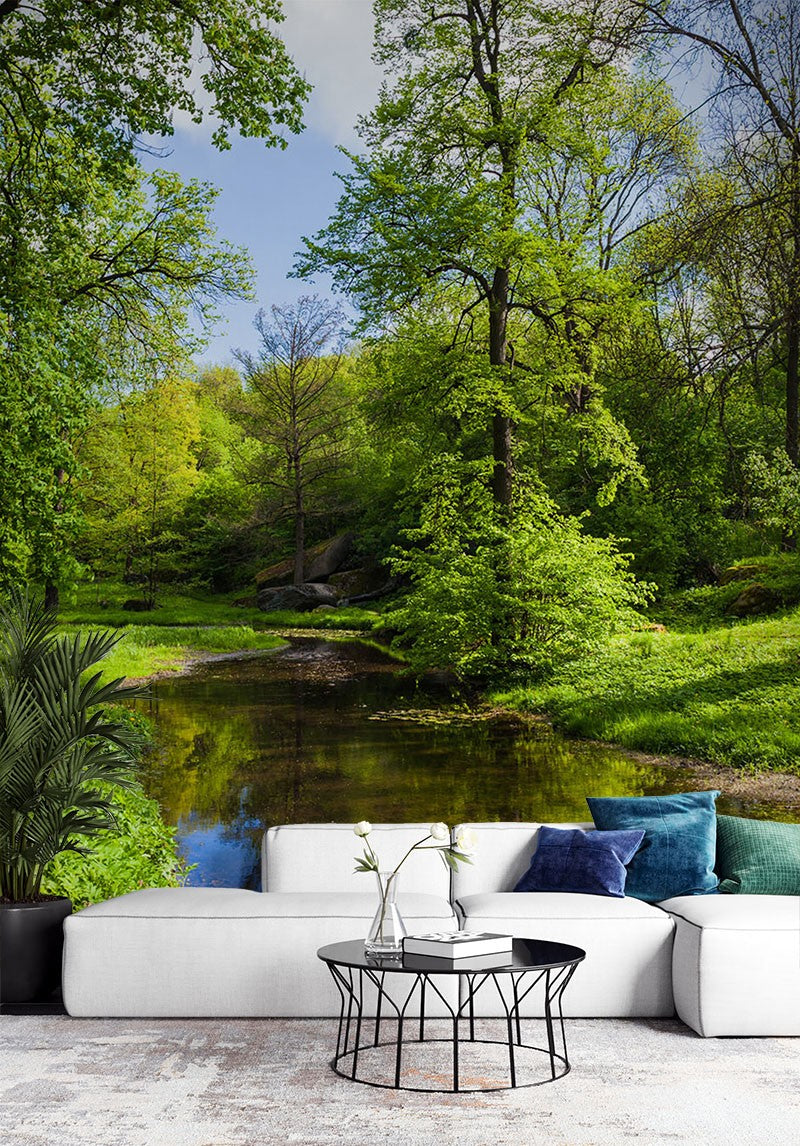 Stream Pond Nature Rivers Lakes Green Wallpaper Mural,Self-Adhesive Peel And Stick 3D Wall Decor,Removable Bedroom Wall Decor