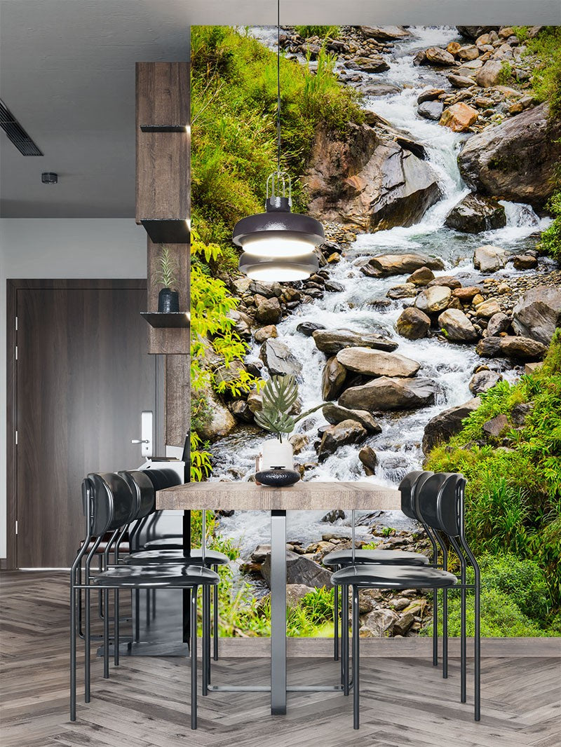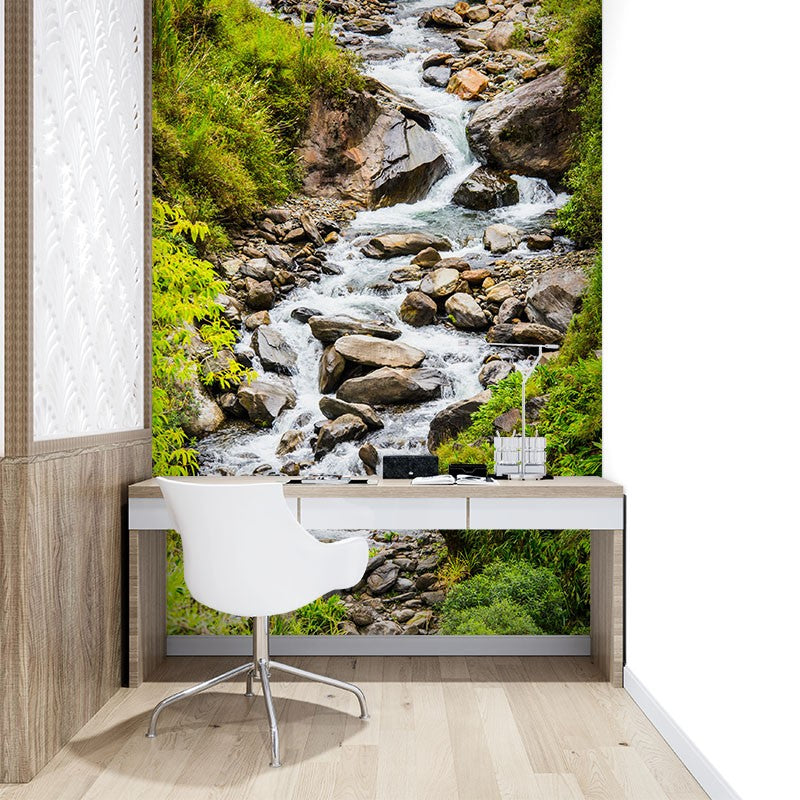Stream Rocks Nature Rivers Lakes Green Wallpaper Mural,Self-Adhesive Peel And Stick 3D Wall Paper,Designer Removable Wall Decor