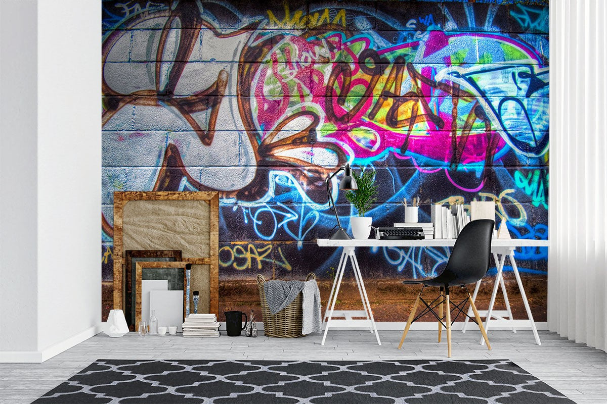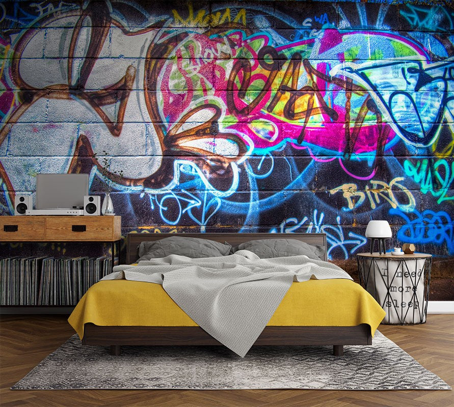Street Drawing Graffiti Multicolour Wallpaper Mural,Self-Adhesive Peel And Stick 3D Wall Paper,Removable Designer Wall Decor