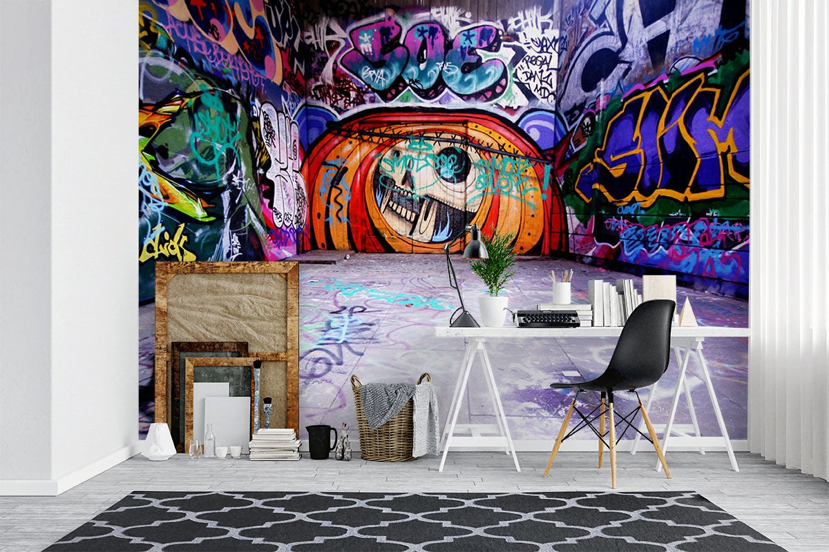 Street Drawing Graffiti Multicolour Wallpaper Mural,Self-Adhesive Peel And Stick 3D Wall Decor,Australian Company Removable Wall Decor