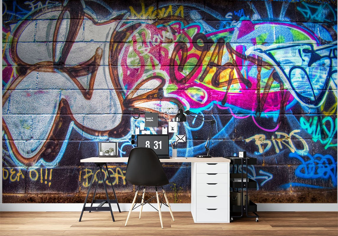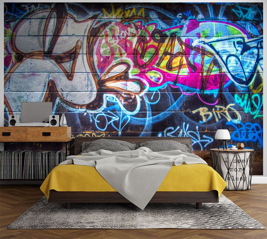 Street Drawing Graffiti Multicolour Wallpaper Mural,Self-Adhesive Peel And Stick 3D Wall Mural,Designer Australian Company Wall Decor