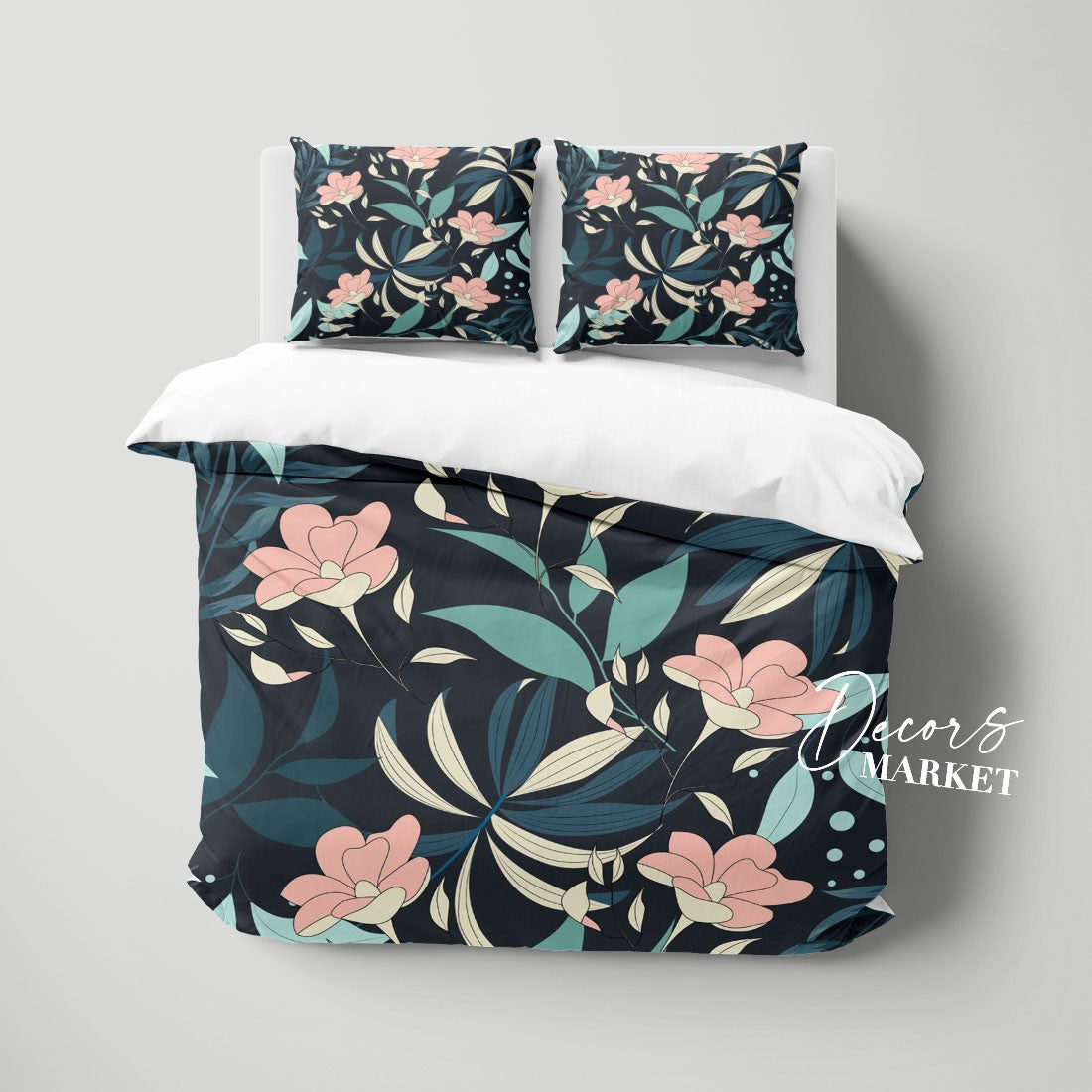 Summer Abstract Flower Duvet Cover Set w Pillowcases, Blue Floral Patterns 3D Quilt Cover, 3pc Single Double Queen King Size Doona Cover