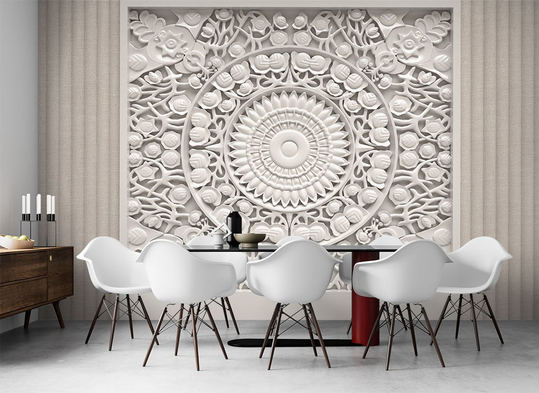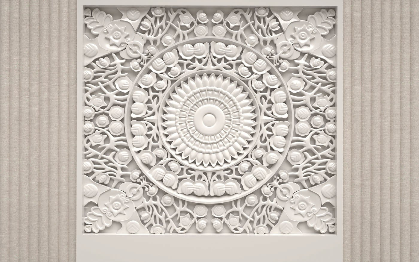 Sun Flower Mandala Floral Dutch Flowers Creamy Wallpaper Mural,Self-Adhesive Peel And Stick 3D Wall Art,Bedroom Designer Wall Decor