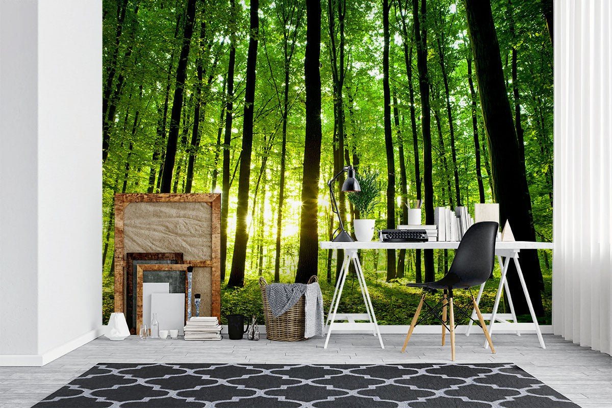Sunlight Shade Forest Green Wallpaper Mural,Self-Adhesive Peel And Stick 3D Wall Mural,Designer Removable Wall Decor