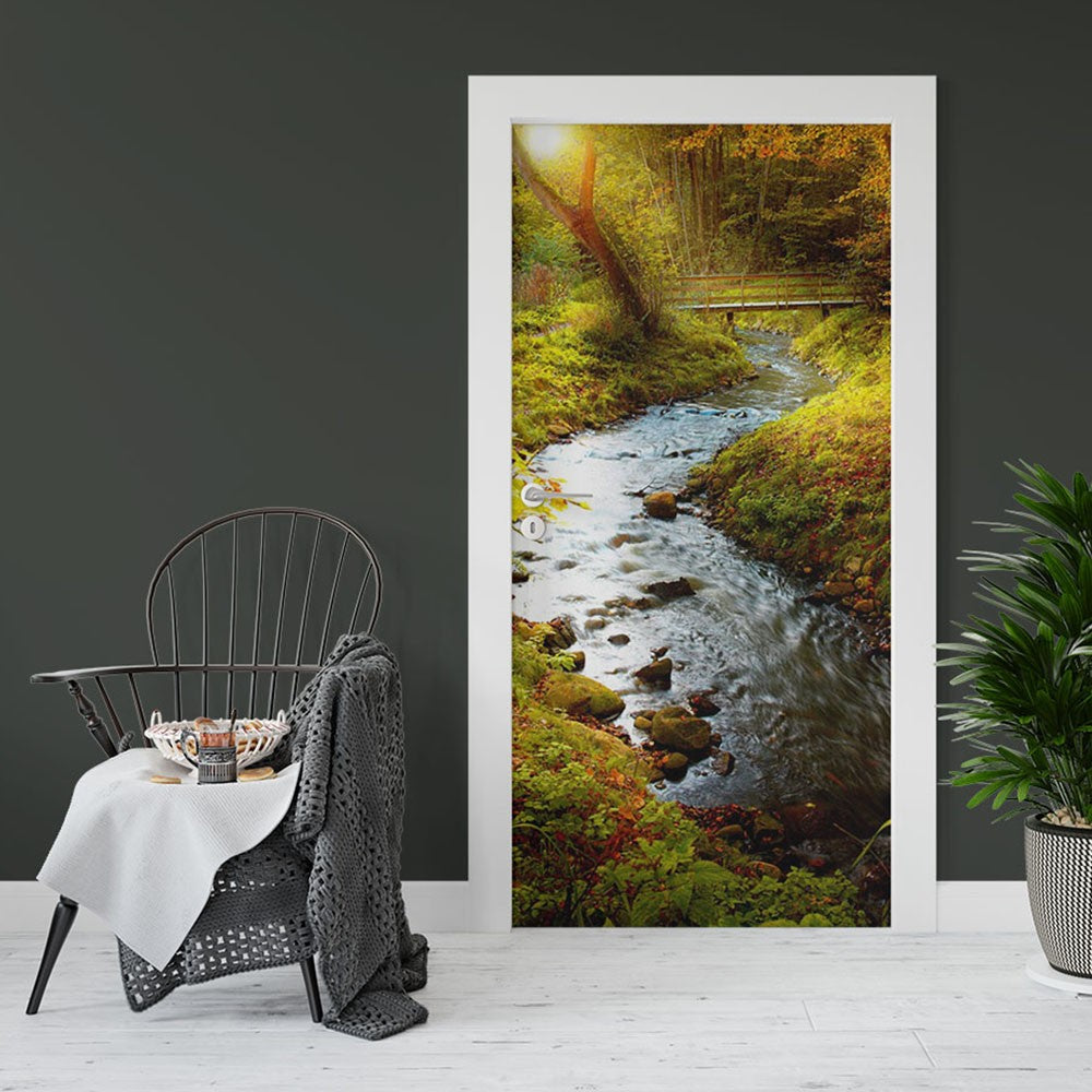 Sunrise Autumn Nature Rivers & Lakes Door Wrap, Customized Mural For Door, Door Mural Sticker, Peel And Stick Door Cover, Removable Door Decal