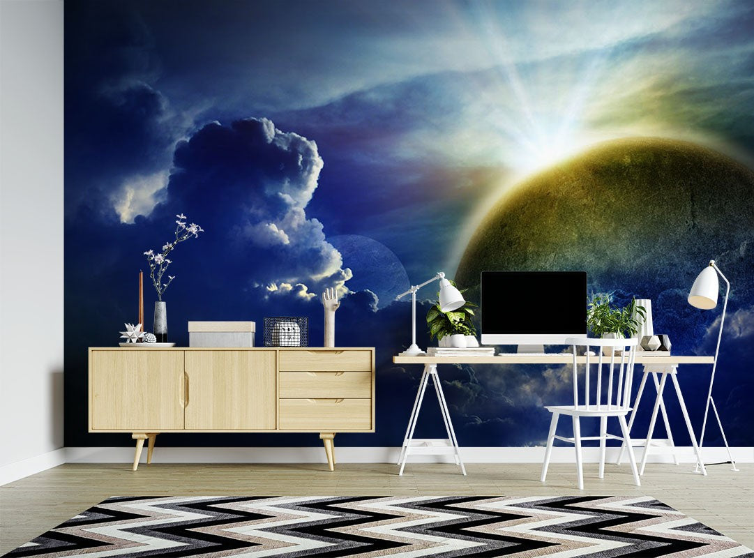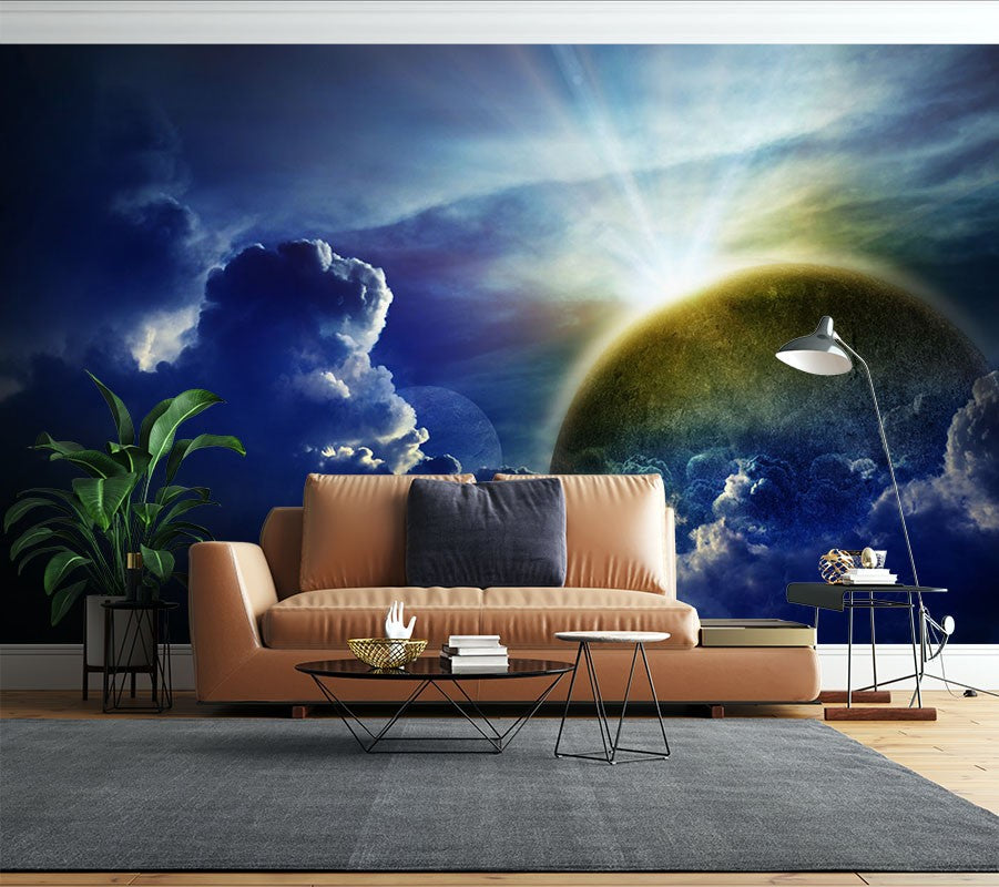 Sunrise Planet Nature Sky Blue Wallpaper Mural,Self-Adhesive Peel And Stick 3D Wall Paper,Removable Bedroom Wall Decor
