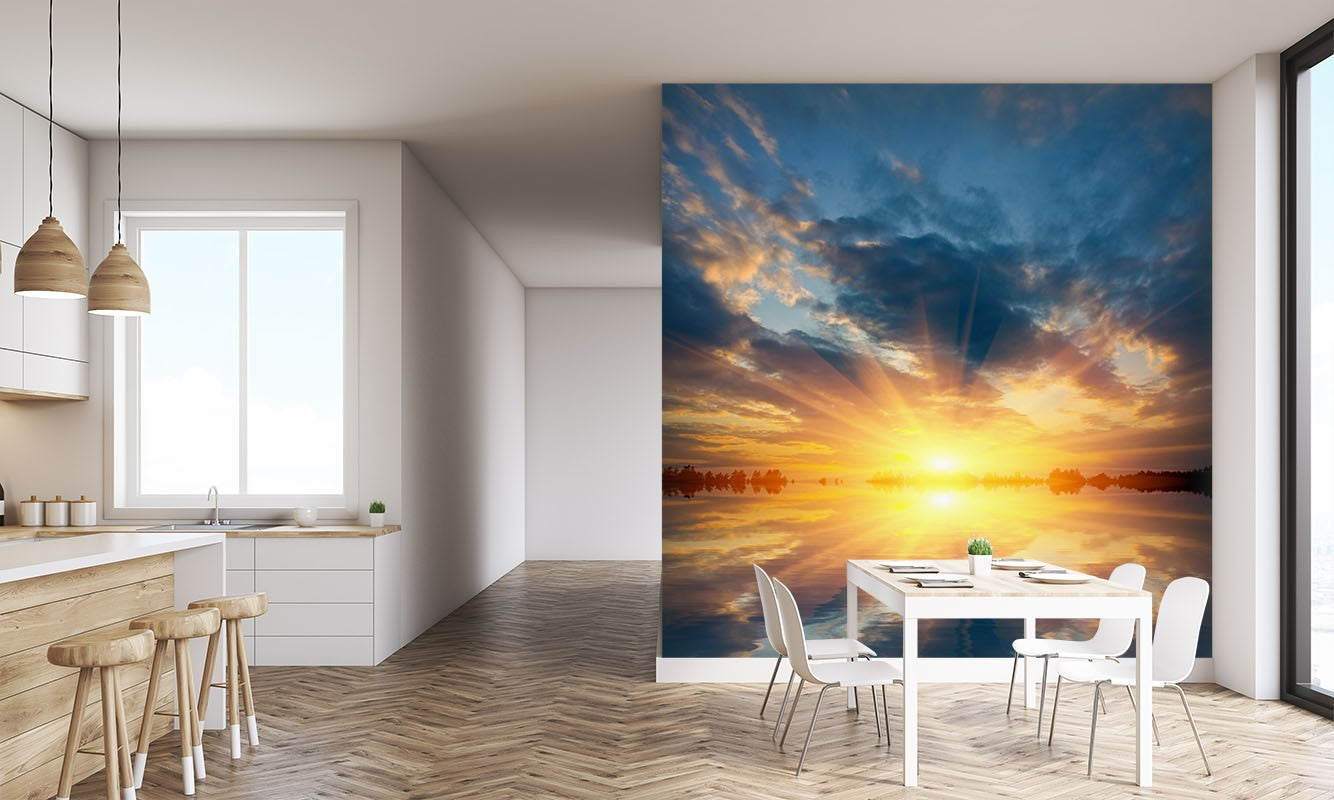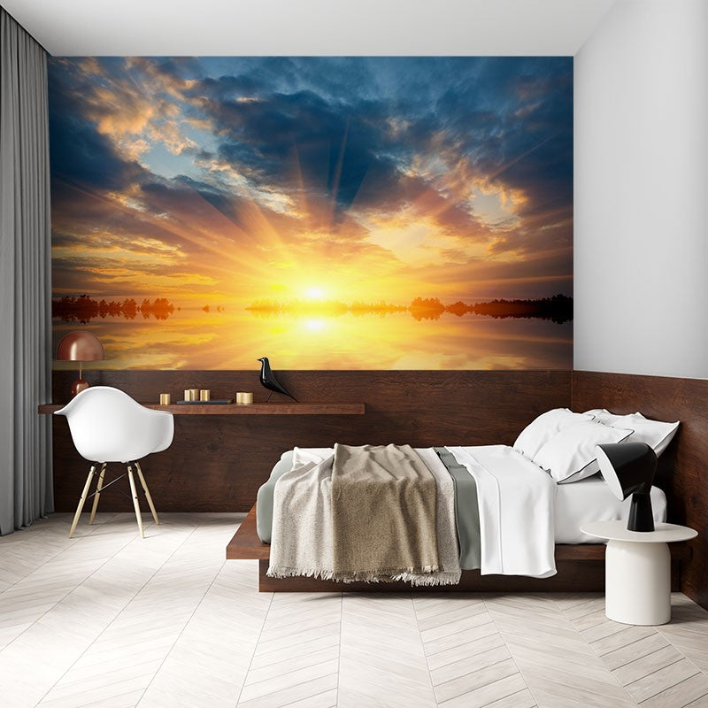 Sunrise Sunset Nature Sky Gold Wallpaper Mural,Self-Adhesive Peel And Stick 3D Wall Decal,Australian Company Designer Wall Decor