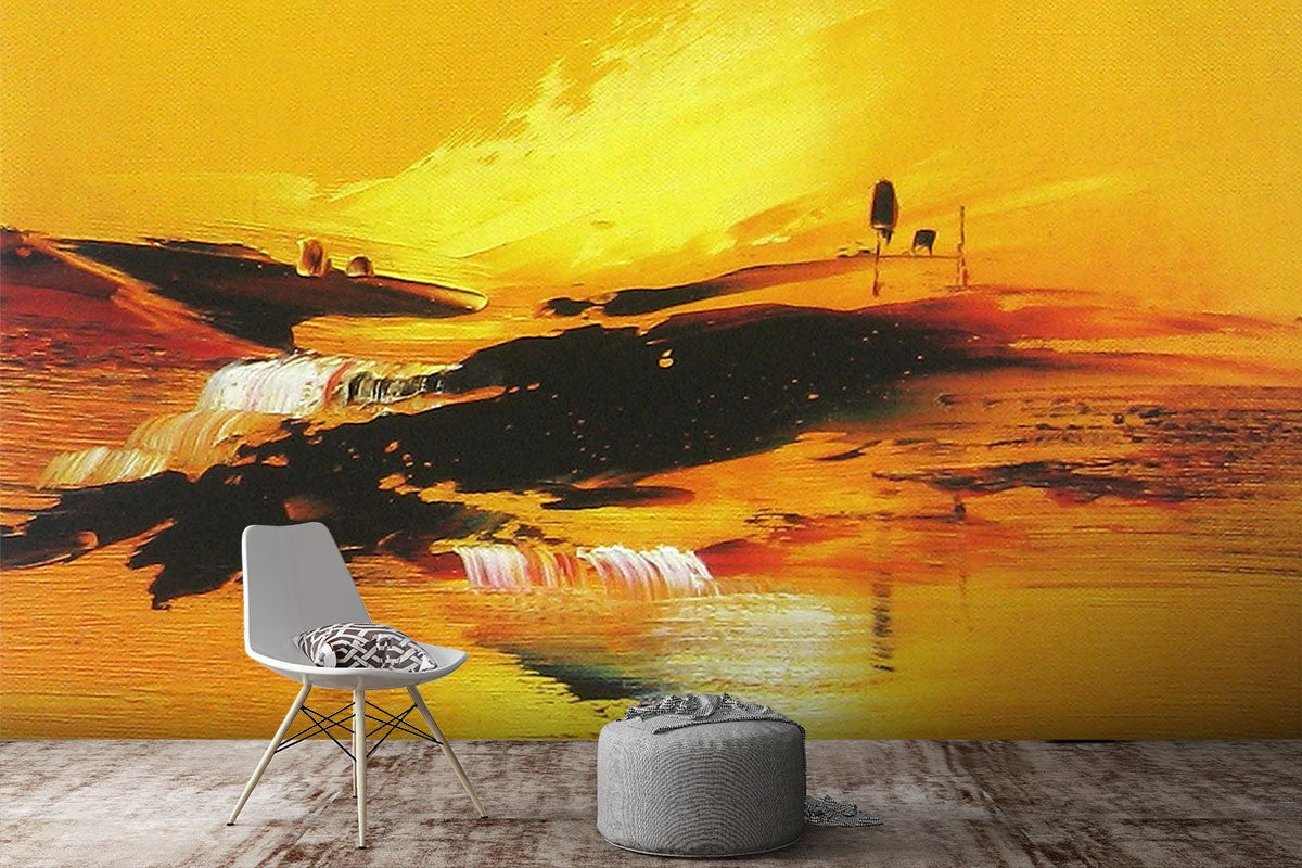 Sunset By Art Traditional Gold Wallpaper Mural,Self-Adhesive Peel And Stick 3D Wall Decor,Bedroom Australian Company Wall Decor