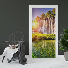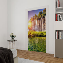 Sunset Creek Nature Waterfall Door Wrap, Customized Mural For Door, Door Mural Sticker, Peel And Stick Door Cover, Removable Door Decal