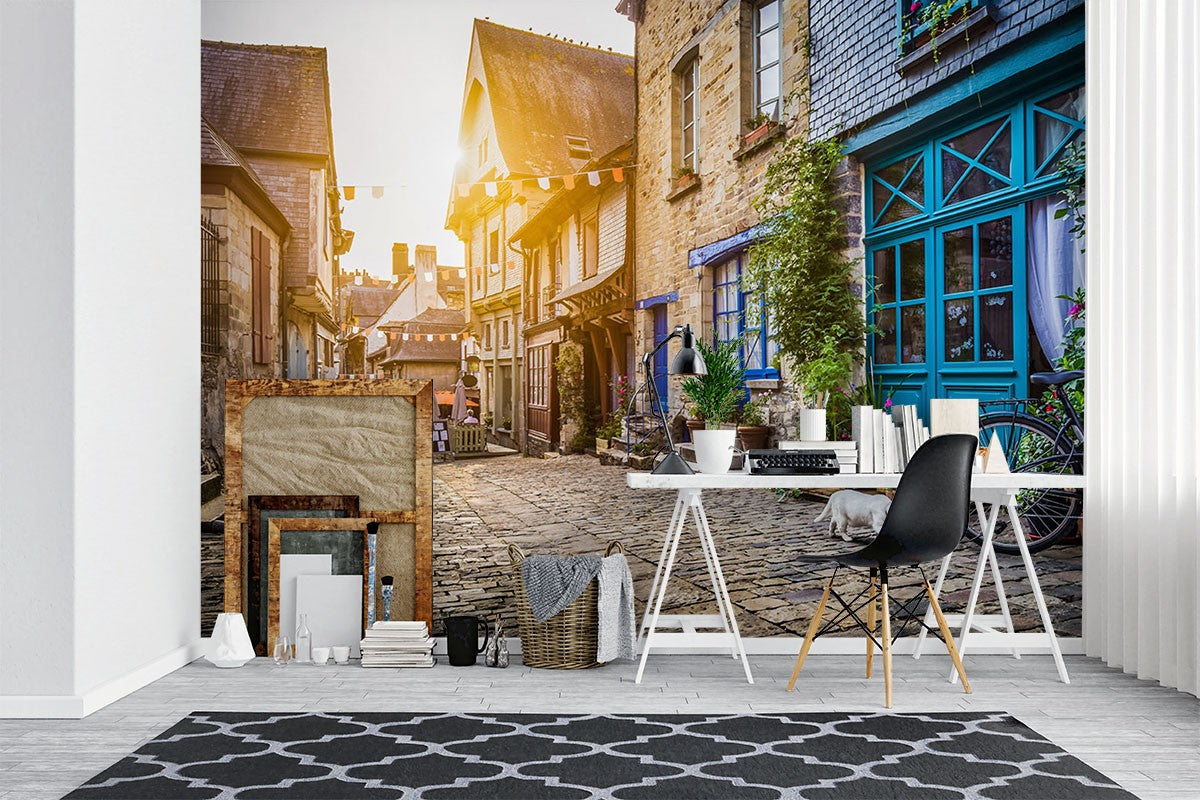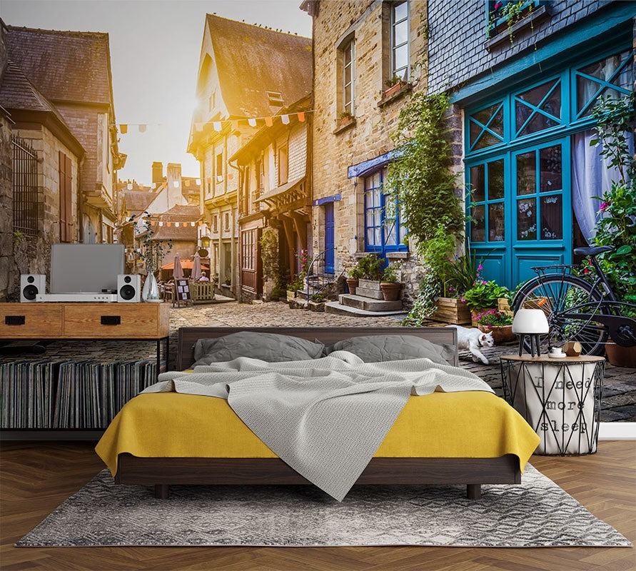 Sunset Street City Streets Brown Wallpaper Mural,Self-Adhesive Peel And Stick 3D Wall Art,Removable Bedroom Wall Decor