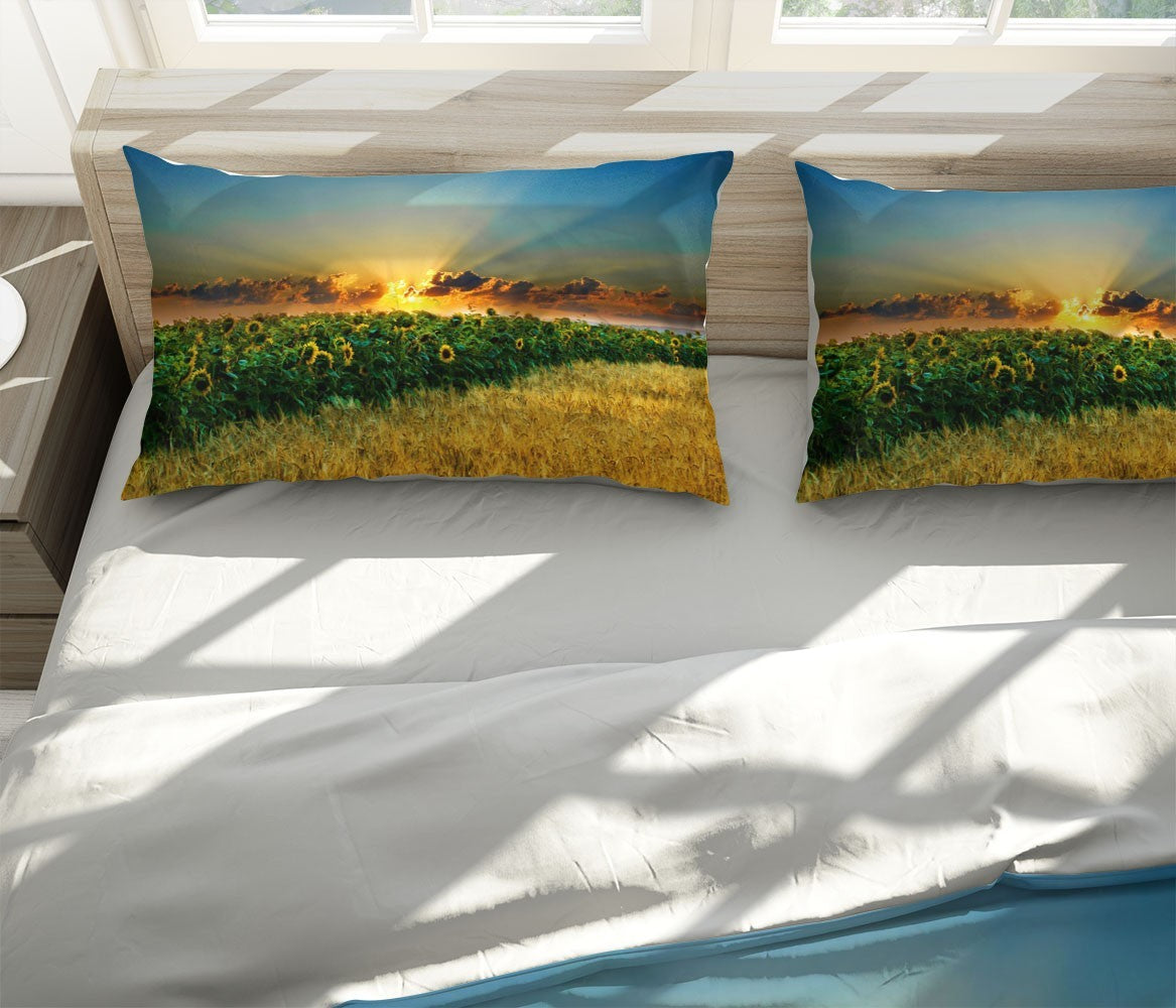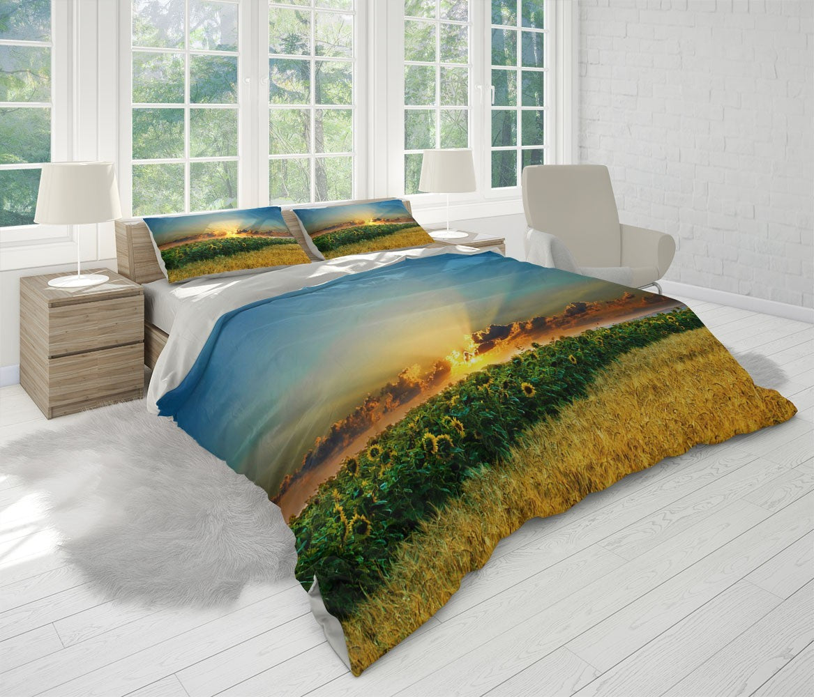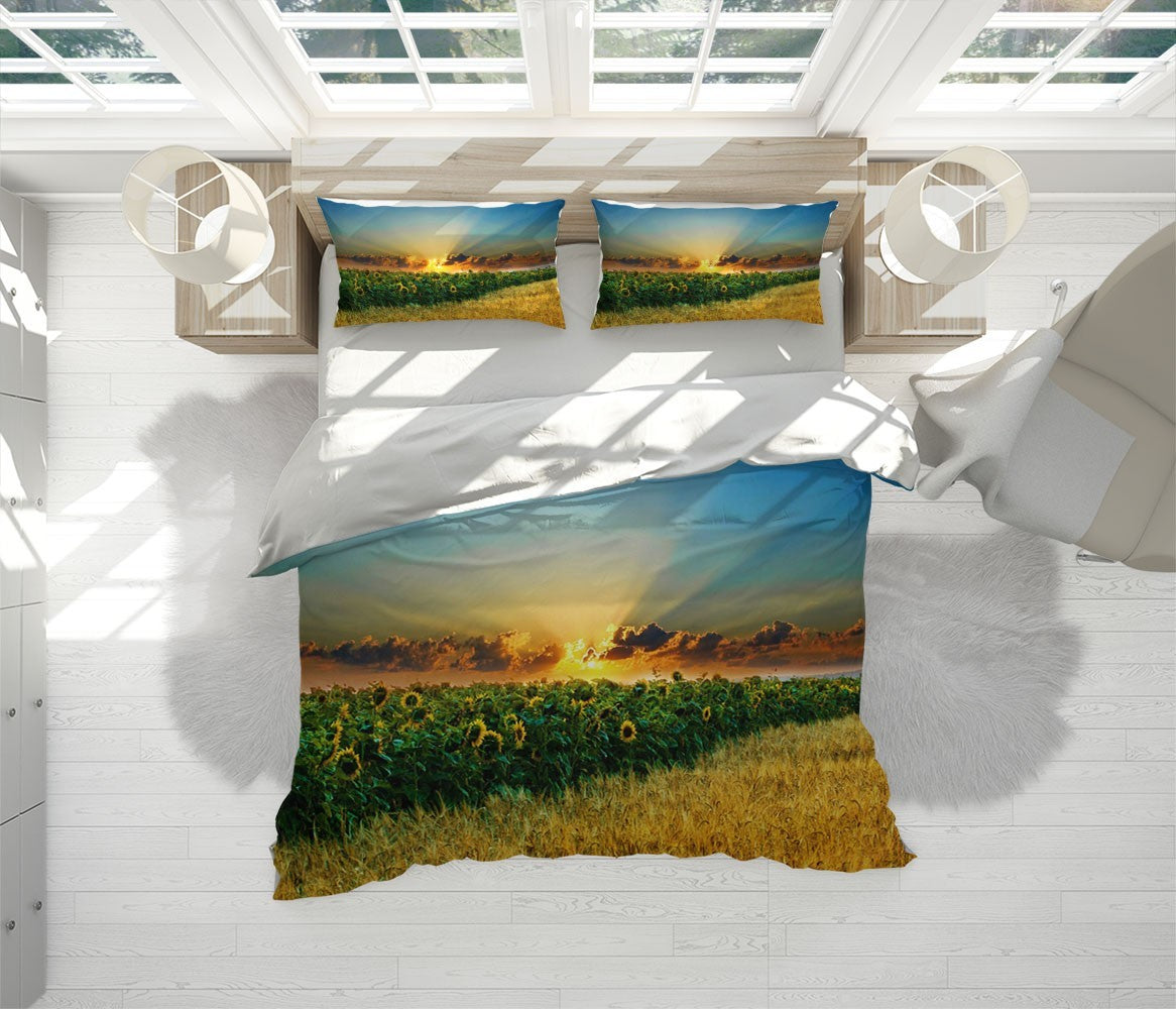Sunset Sunflower Duvet Cover Set W Pillow Cover, Colorful Nature Natural Phenomenon 3D Quilt Cover, Single Double Queen King Size Doona Cover