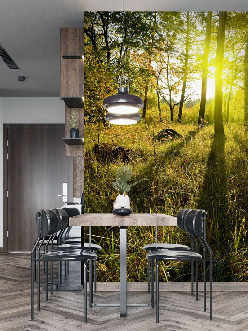 Sunshine Meadow Forest Green Wallpaper Mural,Self-Adhesive Peel And Stick 3D Wall Mural,Designer Removable Wall Decor