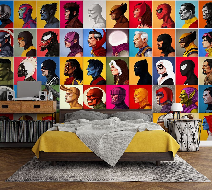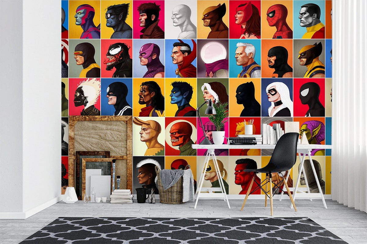 Superhero Silhouette Art Pop Art Multicolour Wallpaper Mural,Self-Adhesive Peel And Stick 3D Wall Decal,Designer Removable Wall Decor
