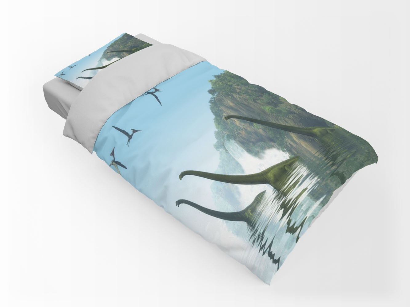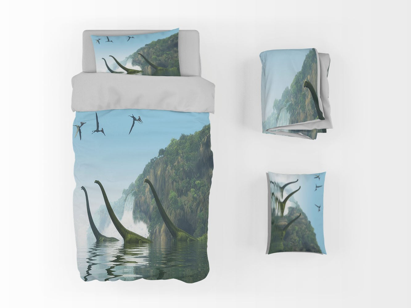 Supersaurus Dino Duvet Cover Set W Pillow Cover, Green Kids Dinosaurs 3D Quilt Cover, Single Double Queen King Size Doona Cover