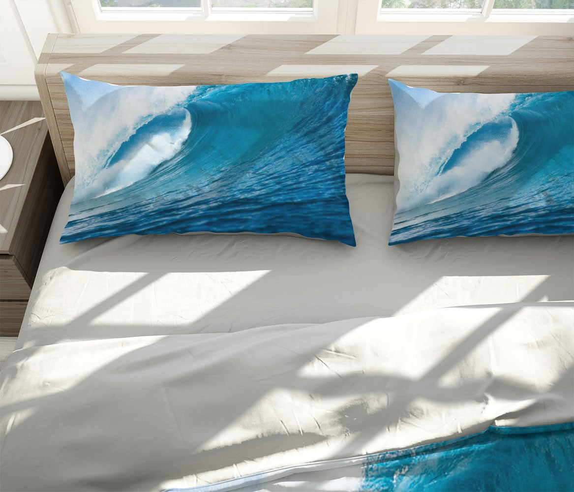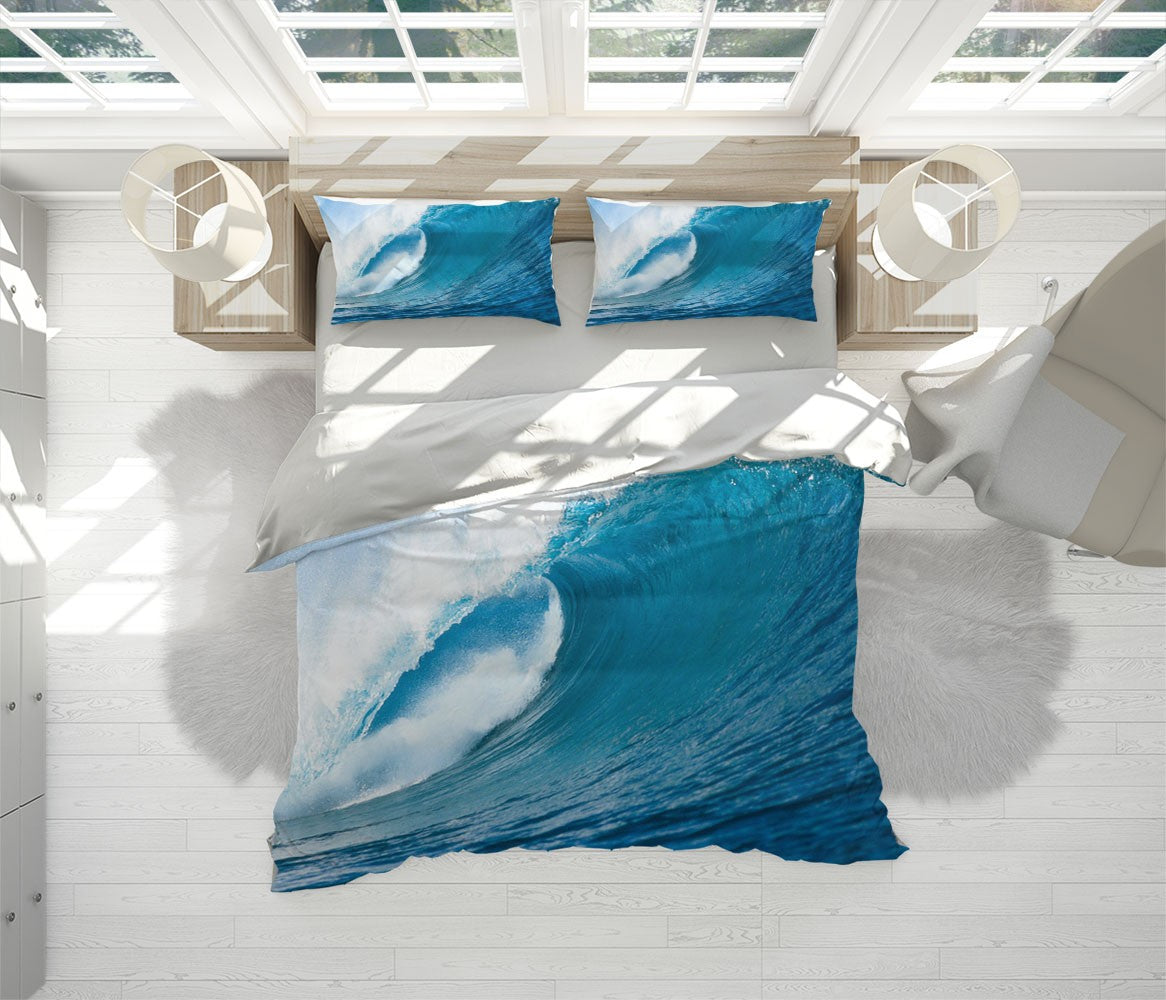 Surfing Beach Wave Blue 3D Duvet Cover Set W Pillow Cover, Single Double Queen King Size, Printed Cotton Quilt Doona Cover 3 Pcs