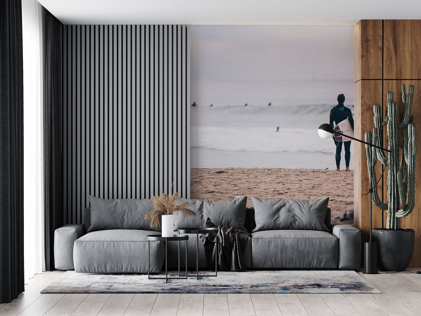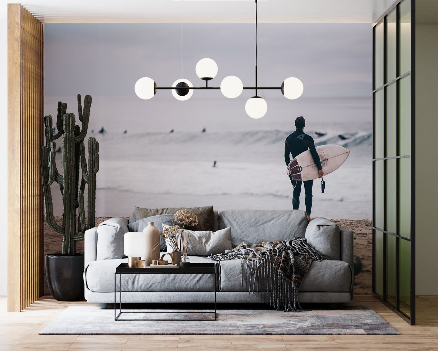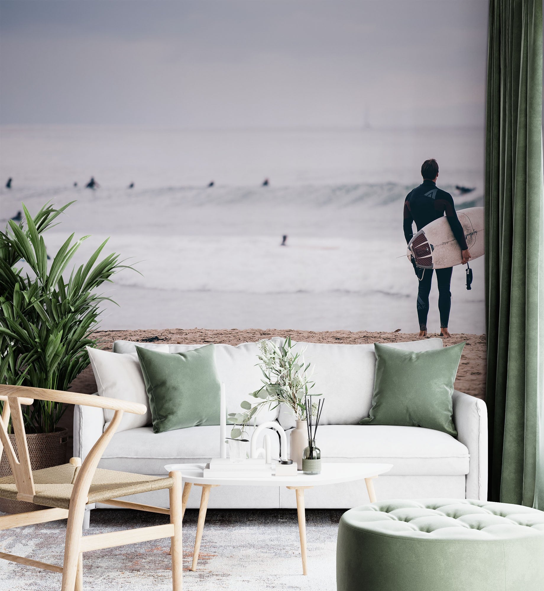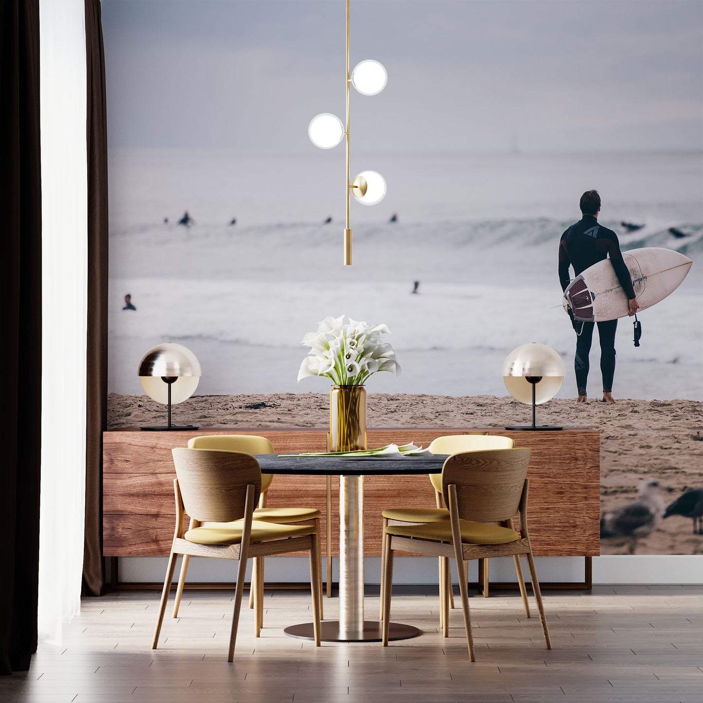Surfing Seagull Beach Gray Wallpaper Mural