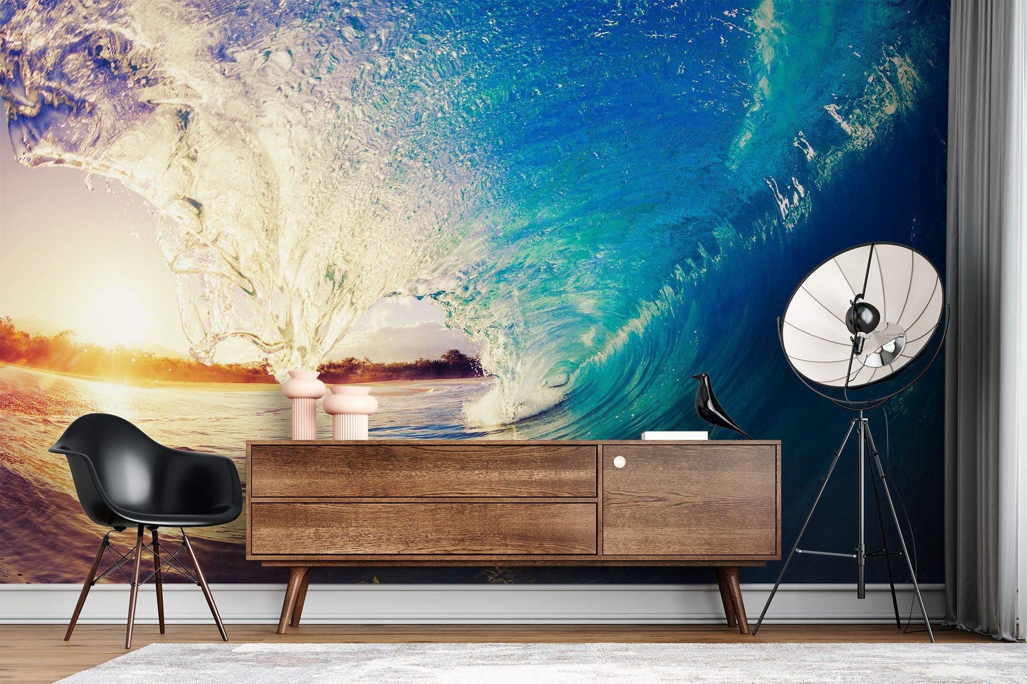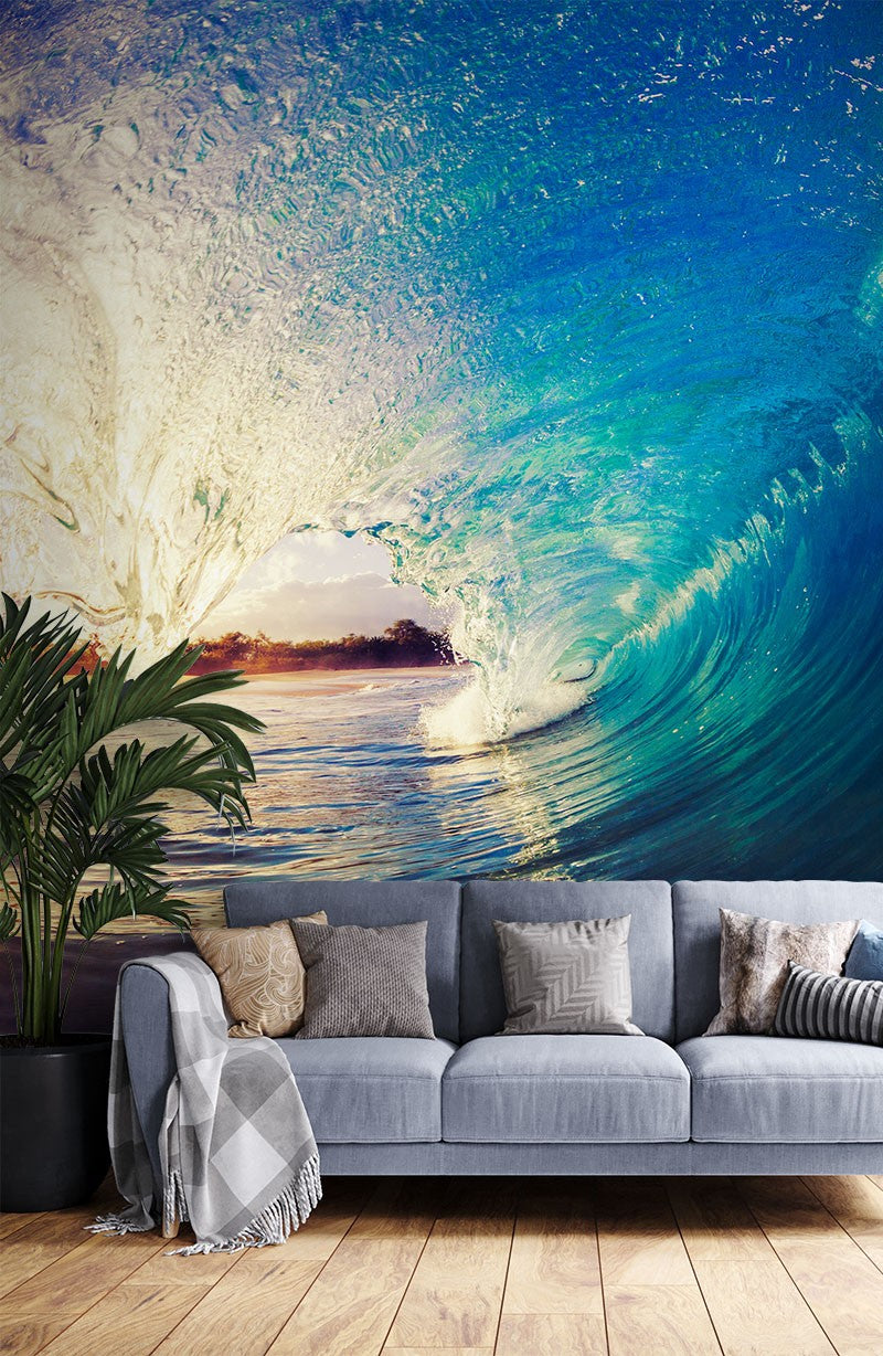 Surfing Wave Beach Wave Blue Wallpaper Mural