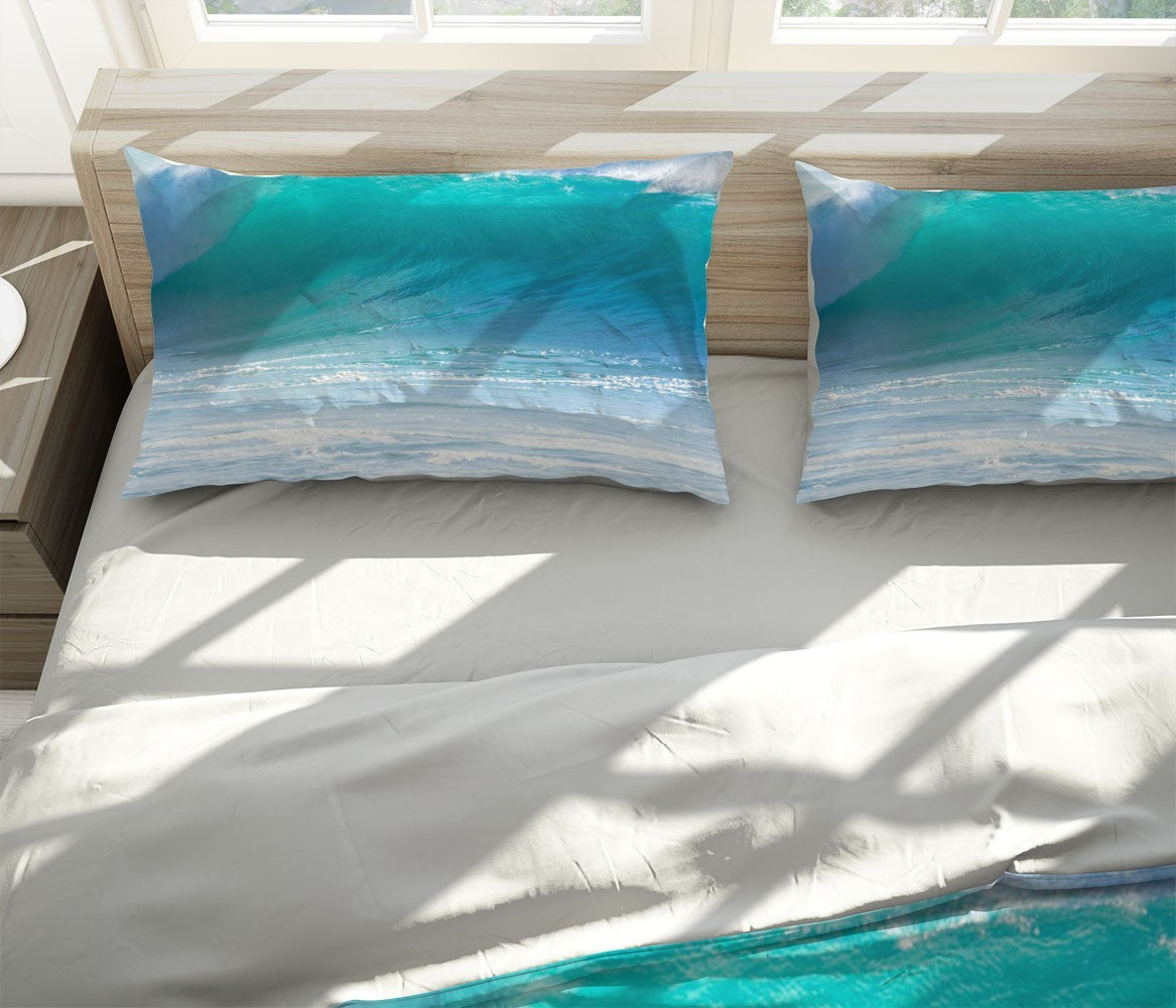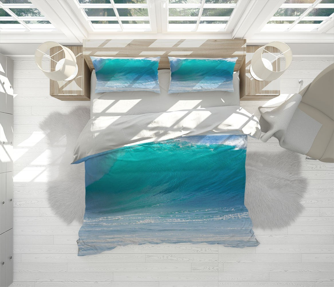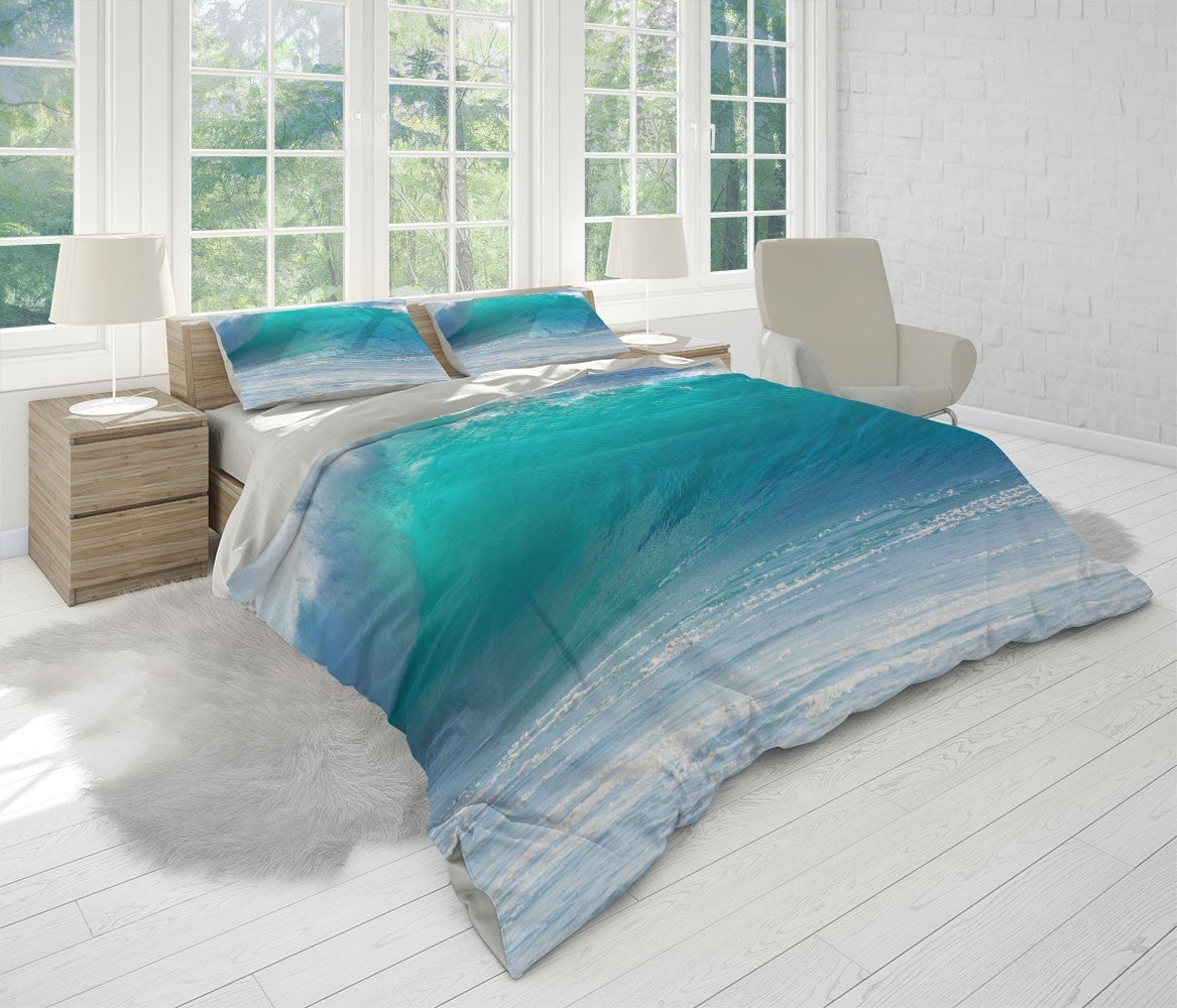 Surge Cloud Duvet Cover Set W Pillow Cover, Green Beach Wave 3D Quilt Cover, Single Double Queen King Size Doona Cover