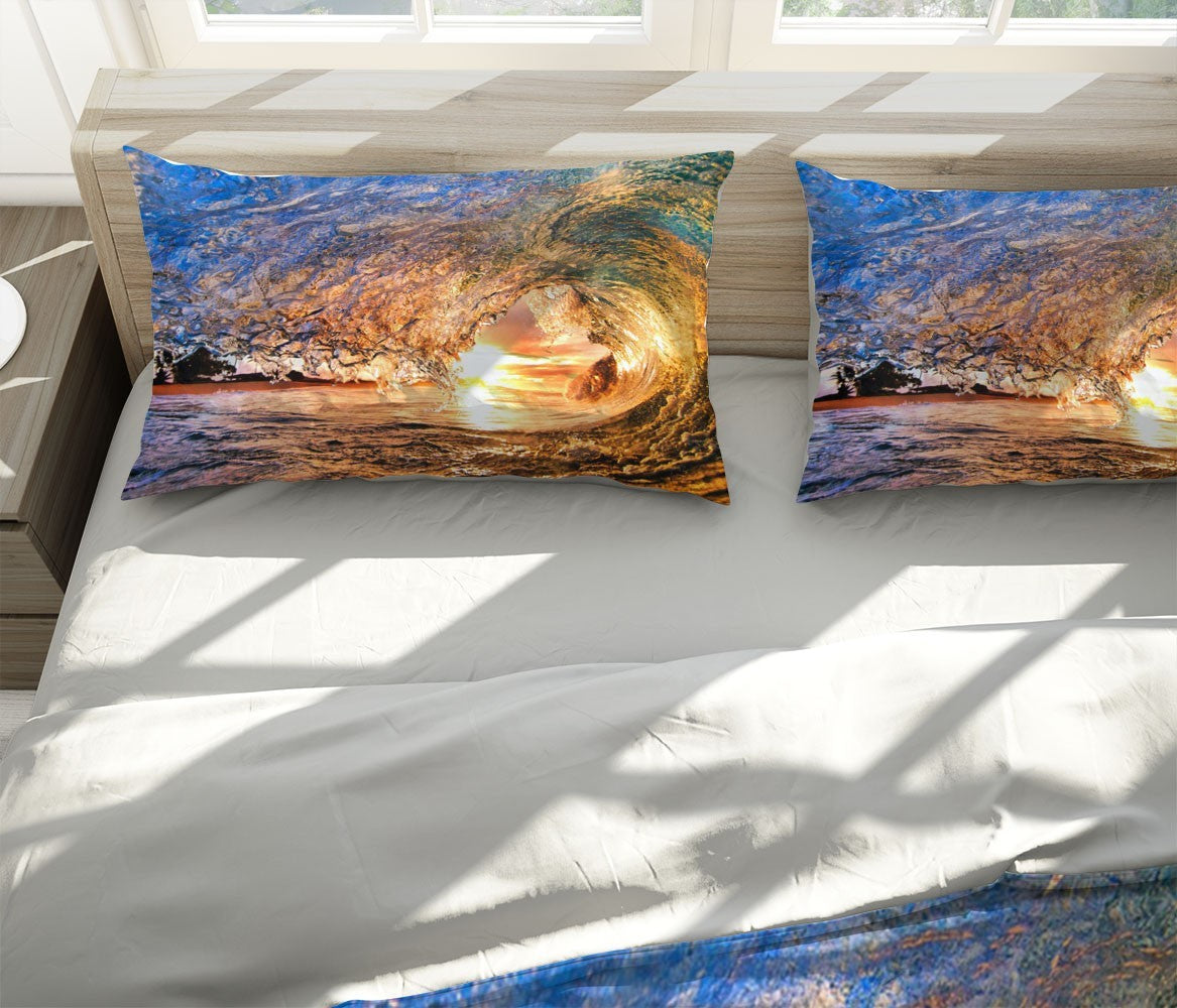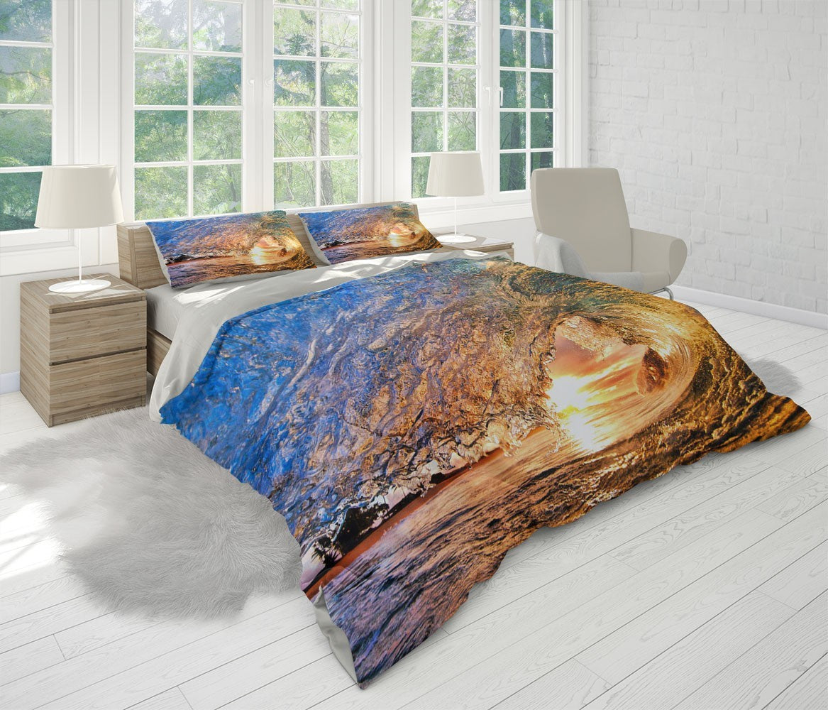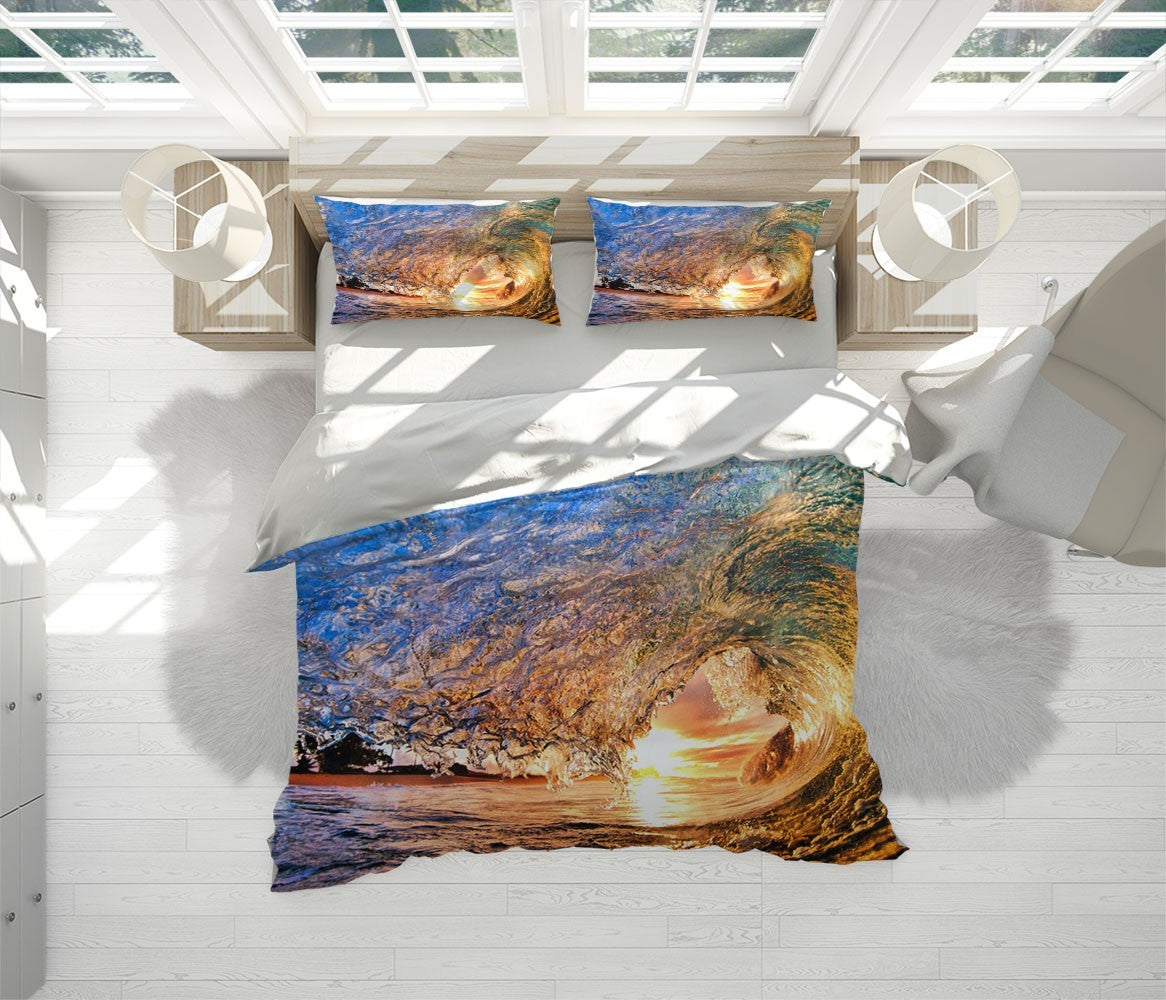 Surge Sea Duvet Cover Set W Pillow Cover, Multicolour Beach Wave 3D Quilt Cover, Single Double Queen King Size Doona Cover