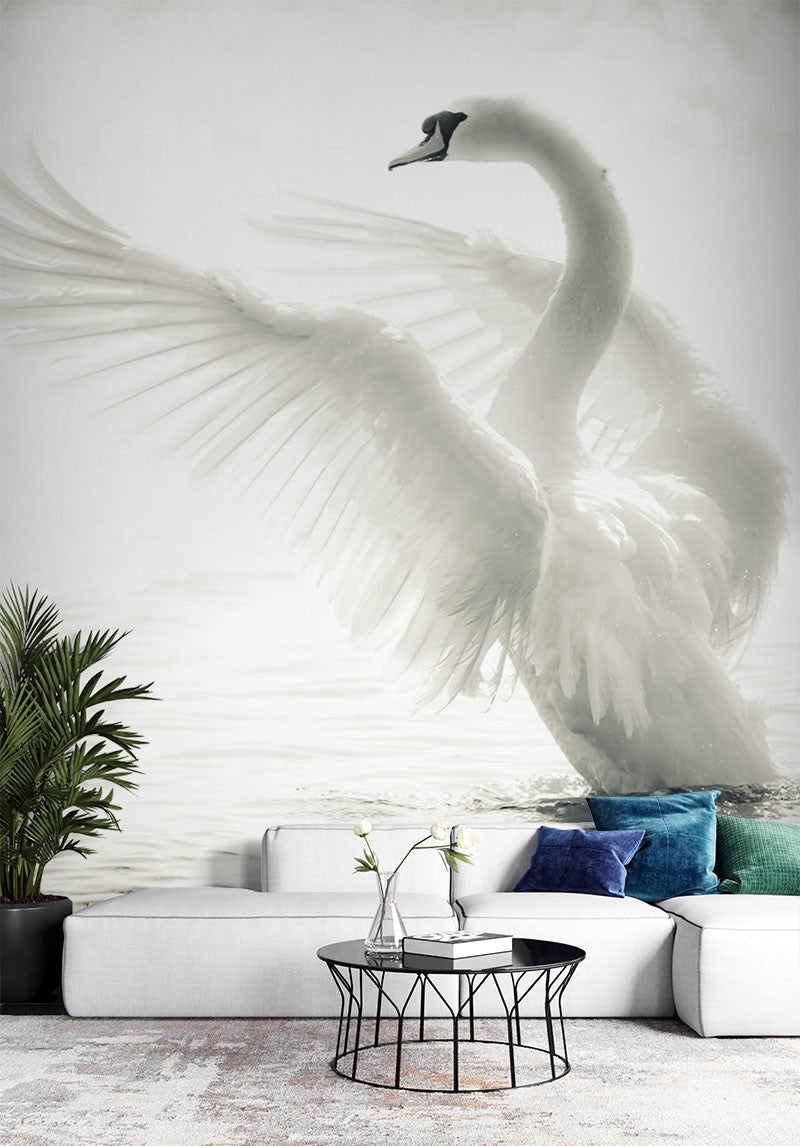 Swan Animals Birds White Wallpaper Mural,Self-Adhesive Peel And Stick 3D Wall Decal,Removable Designer Wall Decor