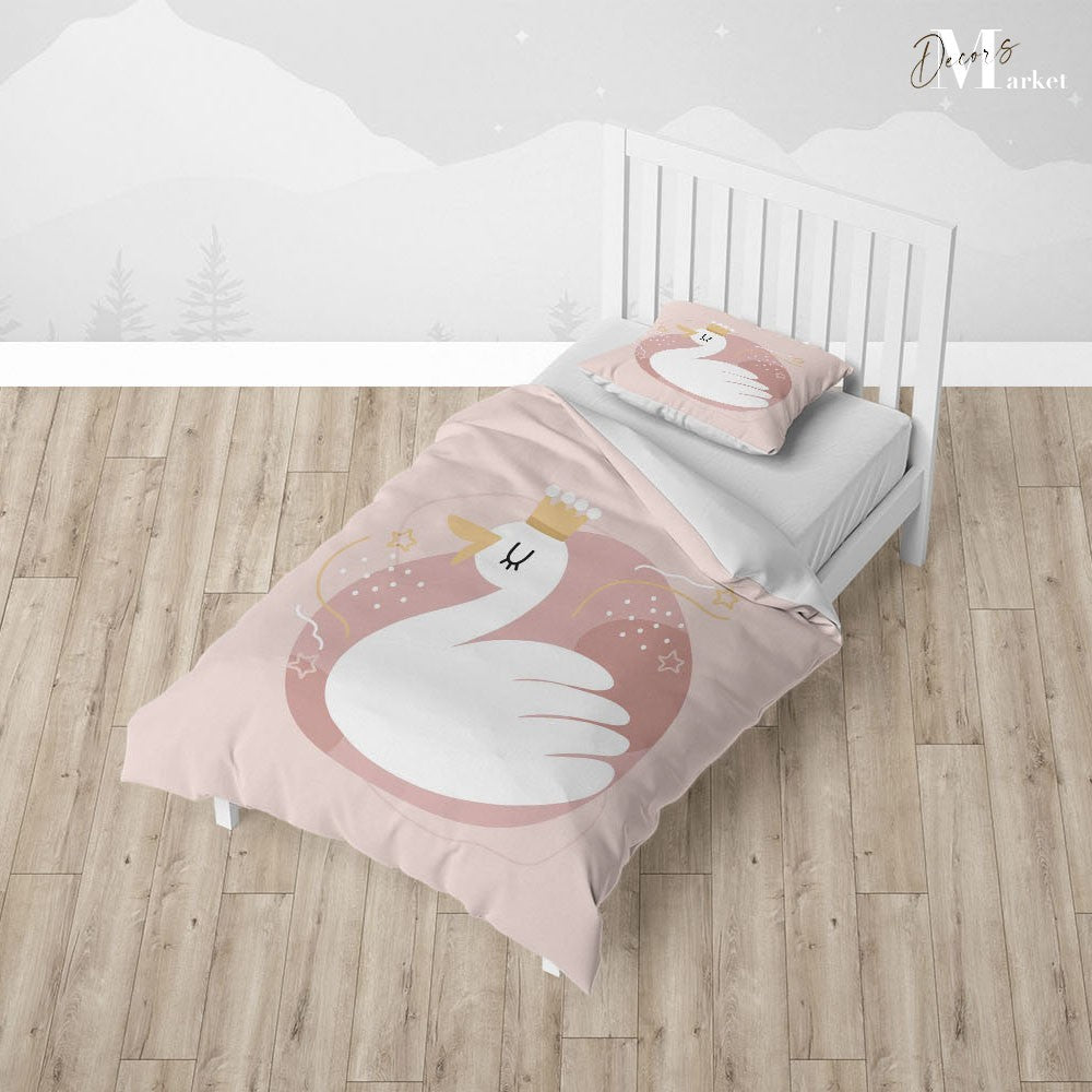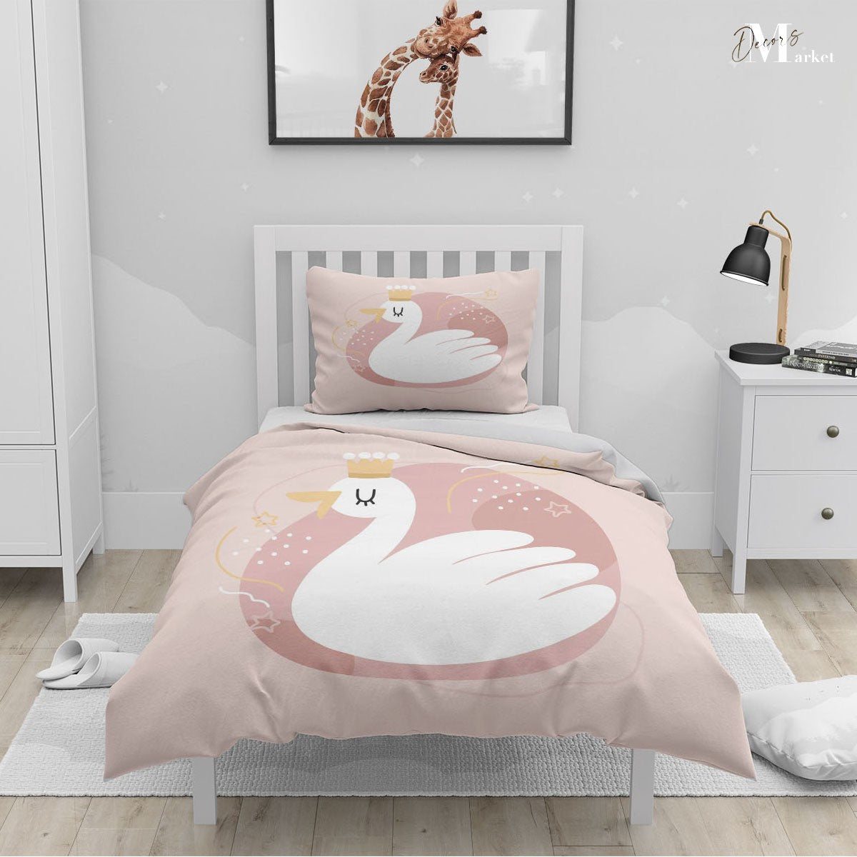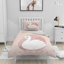 Swan Crown Duvet Cover Set w Pillow Cover, White Kids Cartoon 3D Quilt Cover, Single Double Queen King Size Doona Cover