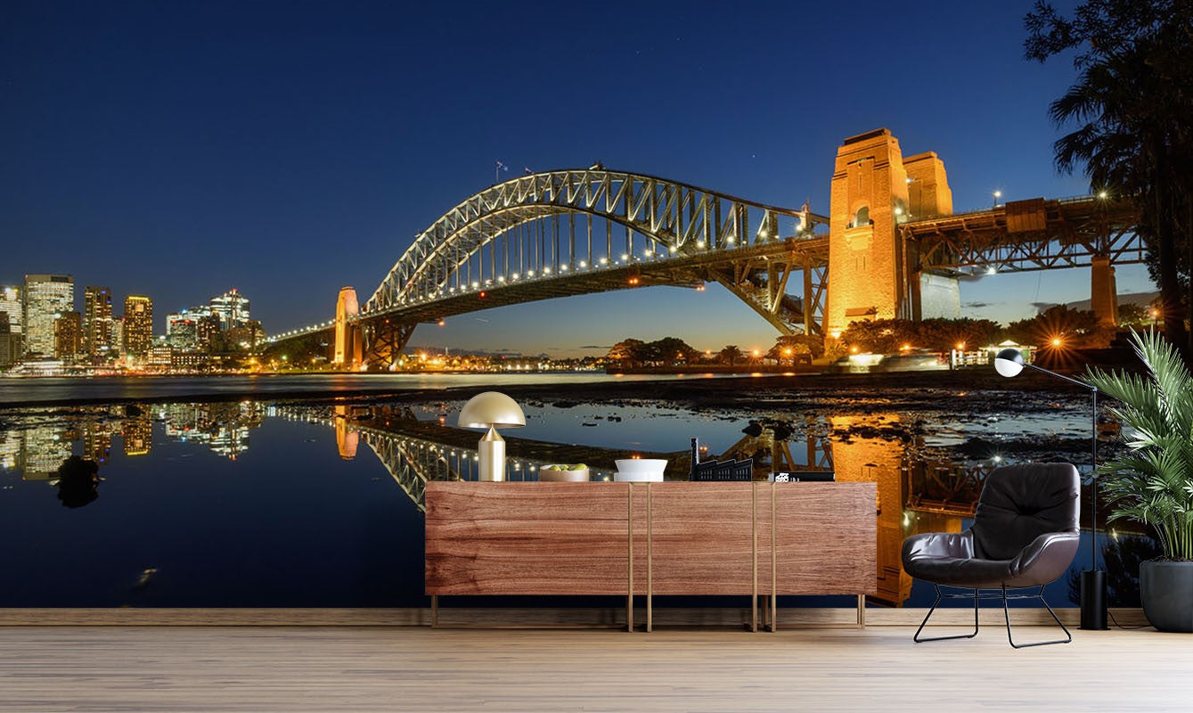 Sydney Harbour Bridge Landmarks Blue Wallpaper Mural,Self-Adhesive Peel And Stick 3D Wall Decal,Australian Company Wall Decor