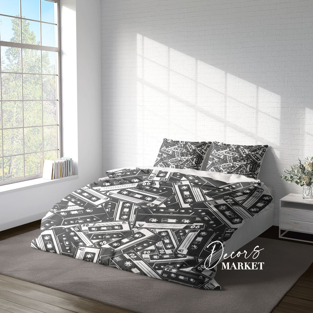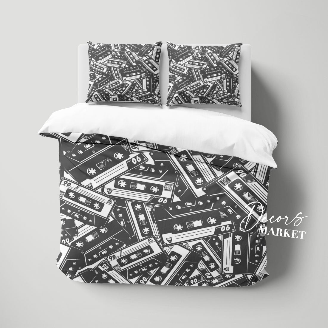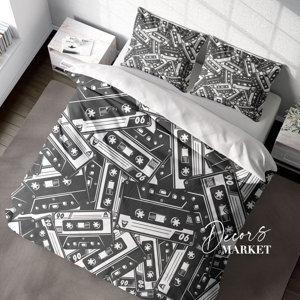 Tape Music Duvet Cover Set w Pillowcases, Black&White Art Classic 3D Quilt Cover, 3pc Single Double Queen King Size Doona Cover