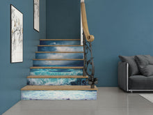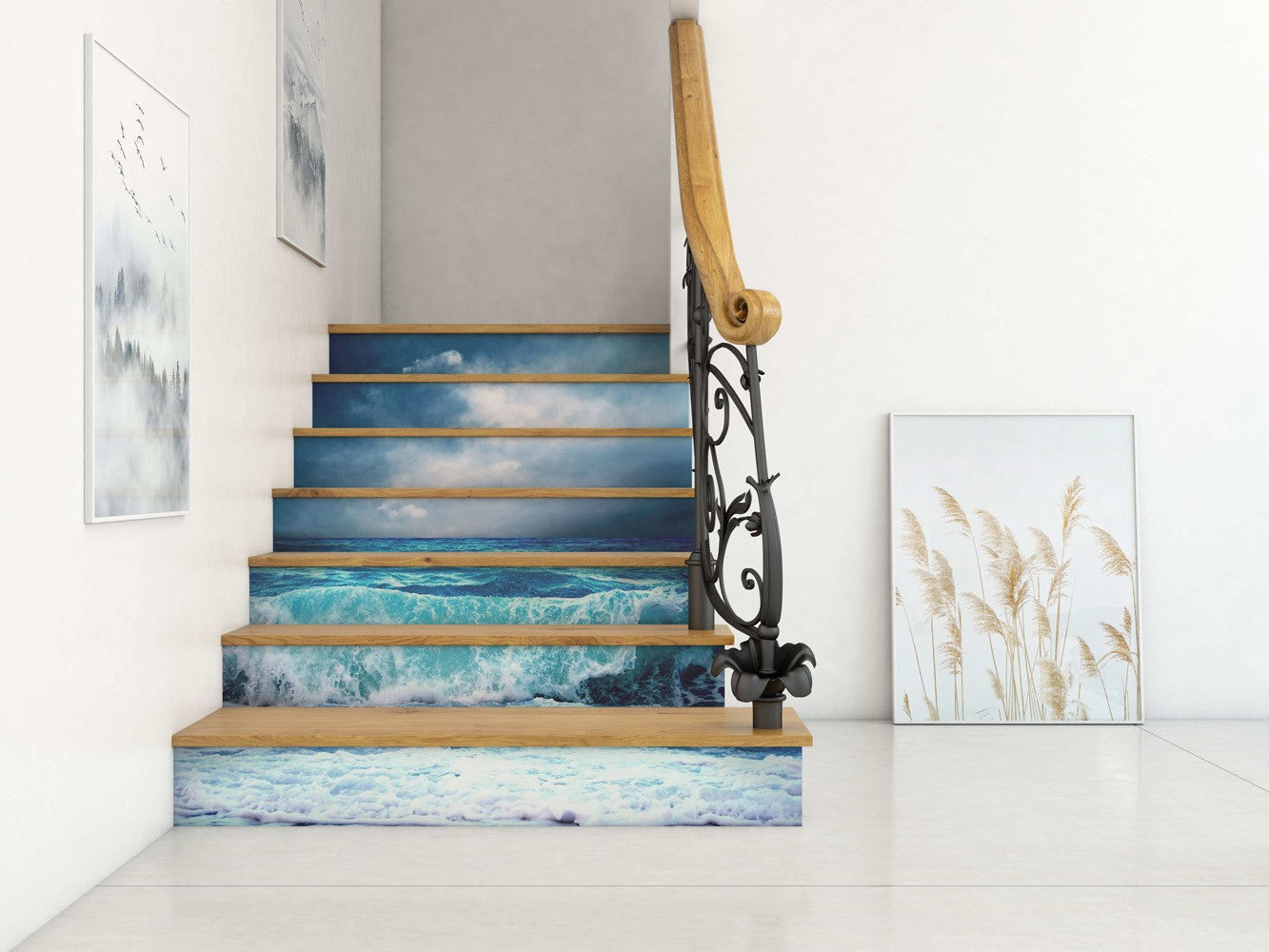 The Sea Beach Wave Blue Stair Riser Decals, Waterproof Removable Staircase Decals, Vinyl Peel And Stick Stairs Decal Stickers