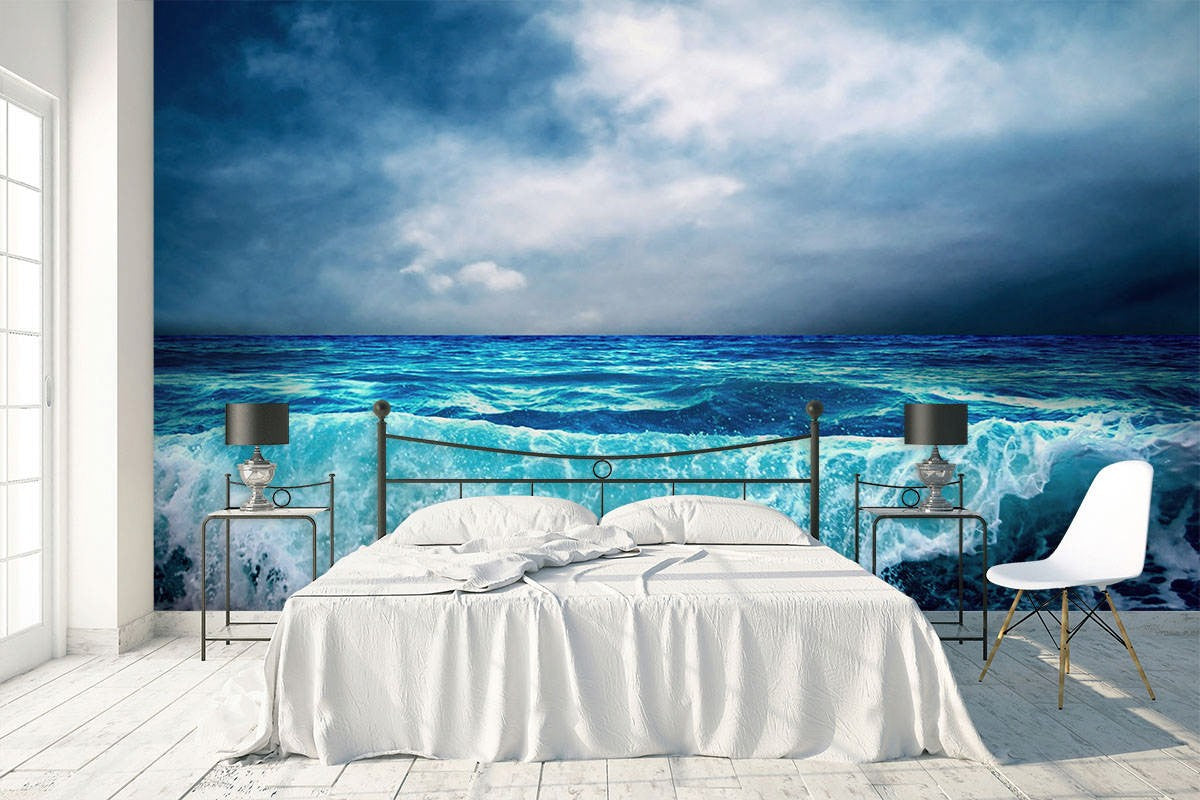 The Sea Beach Wave Blue Wallpaper Mural,Self-Adhesive Peel And Stick 3D Wall Decal,Removable Australian Company Wall Decor