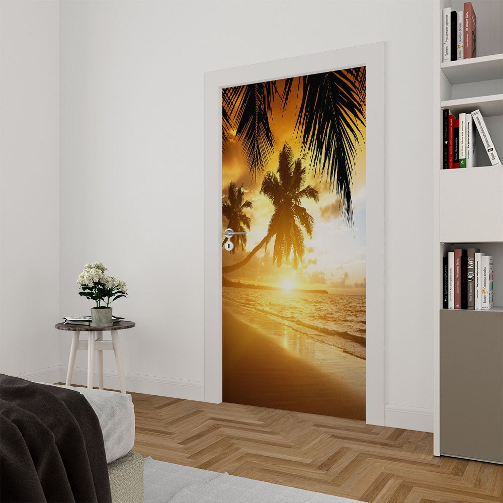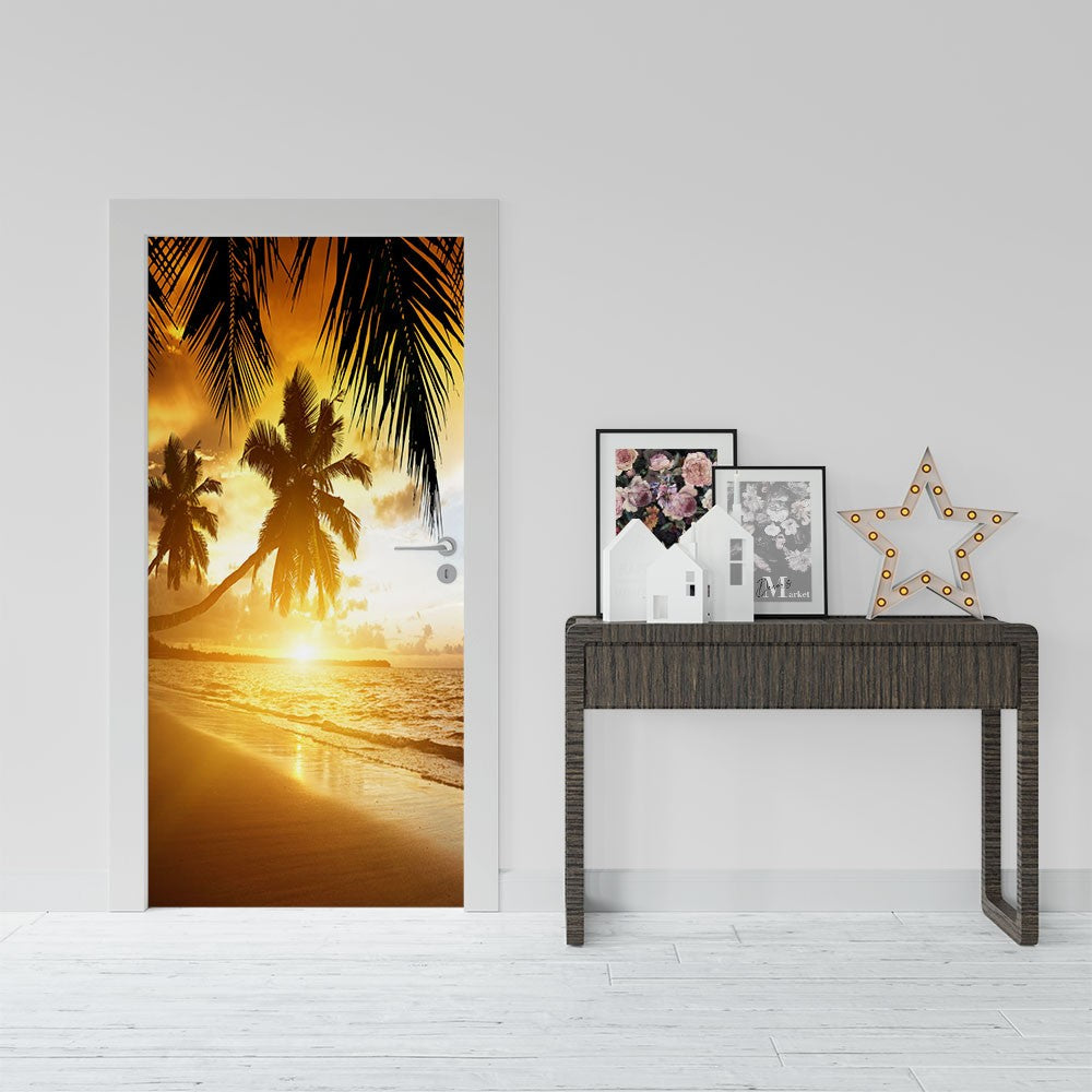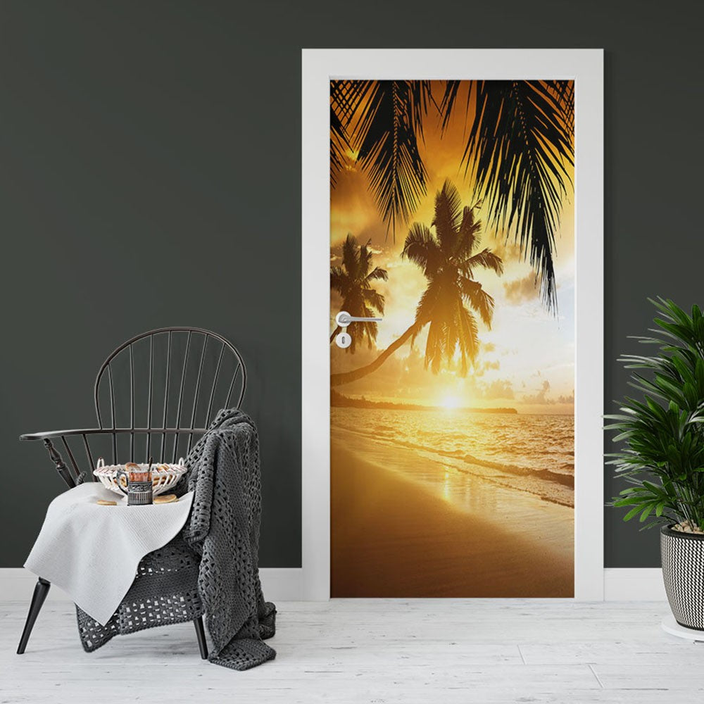 The Sunset Beach Beach Door Wrap, Customized Mural For Door, Door Mural Sticker, Peel And Stick Door Cover, Removable Door Decal