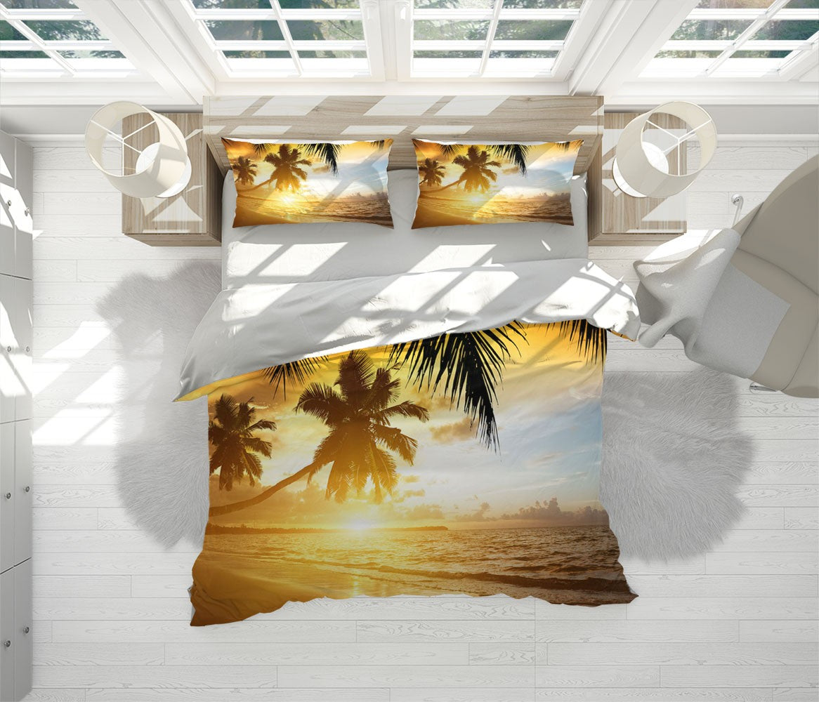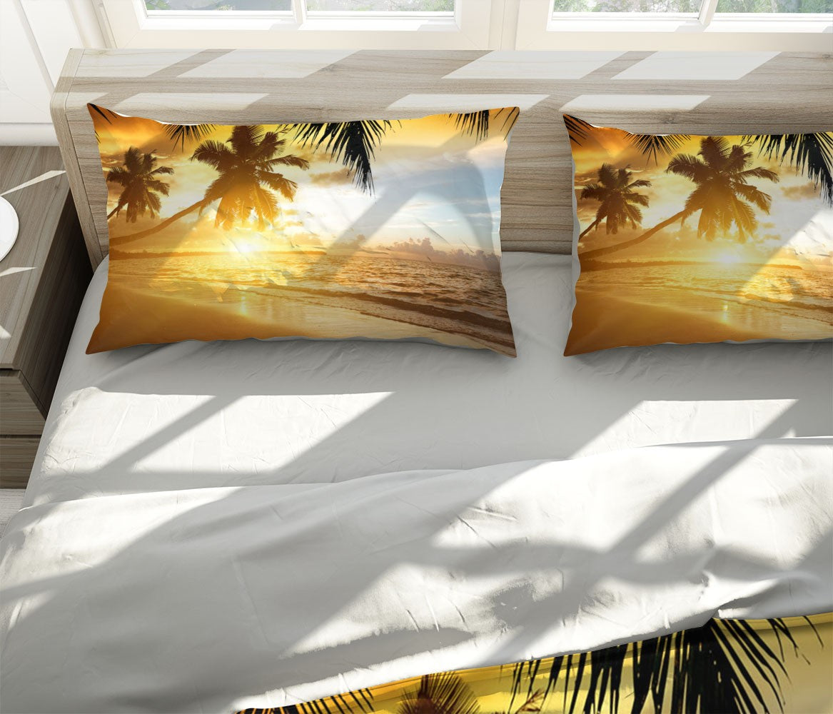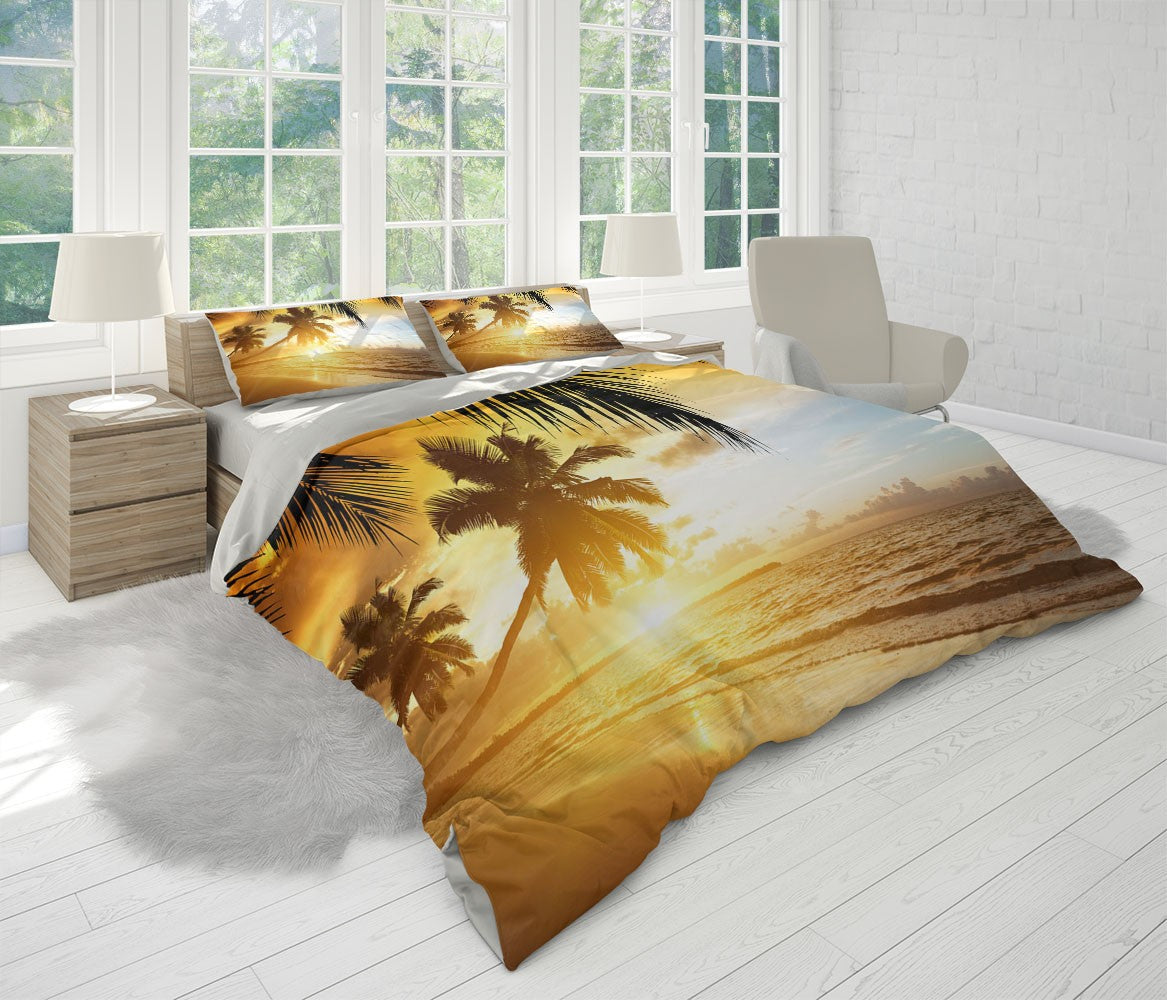 The Sunset Beach Gold 3D Duvet Cover Set W Pillow Cover, Single Double Queen King Size, Printed Cotton Quilt Doona Cover 3 Pcs