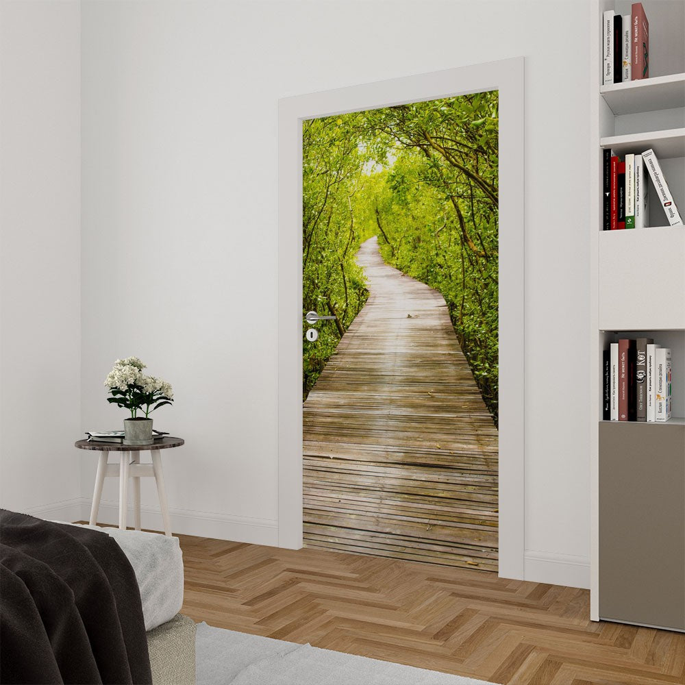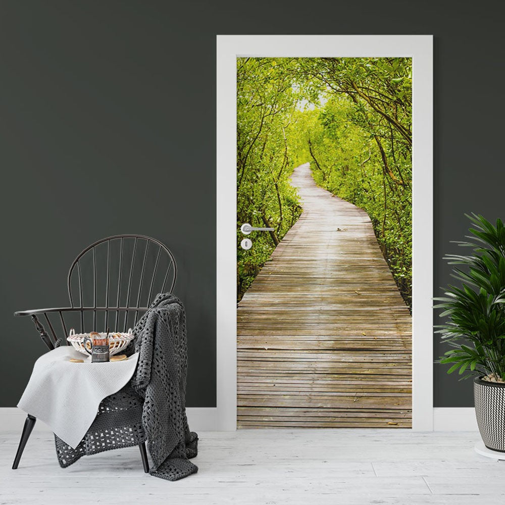 Trail Woods Forest Jungle Door Wrap, Customized Mural For Door, Door Mural Sticker, Peel And Stick Door Cover, Removable Door Decal
