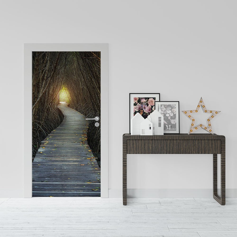 Trail Woods Nature Landscape Door Wrap, Customized Mural For Door, Door Mural Sticker, Peel And Stick Door Cover, Removable Door Decal