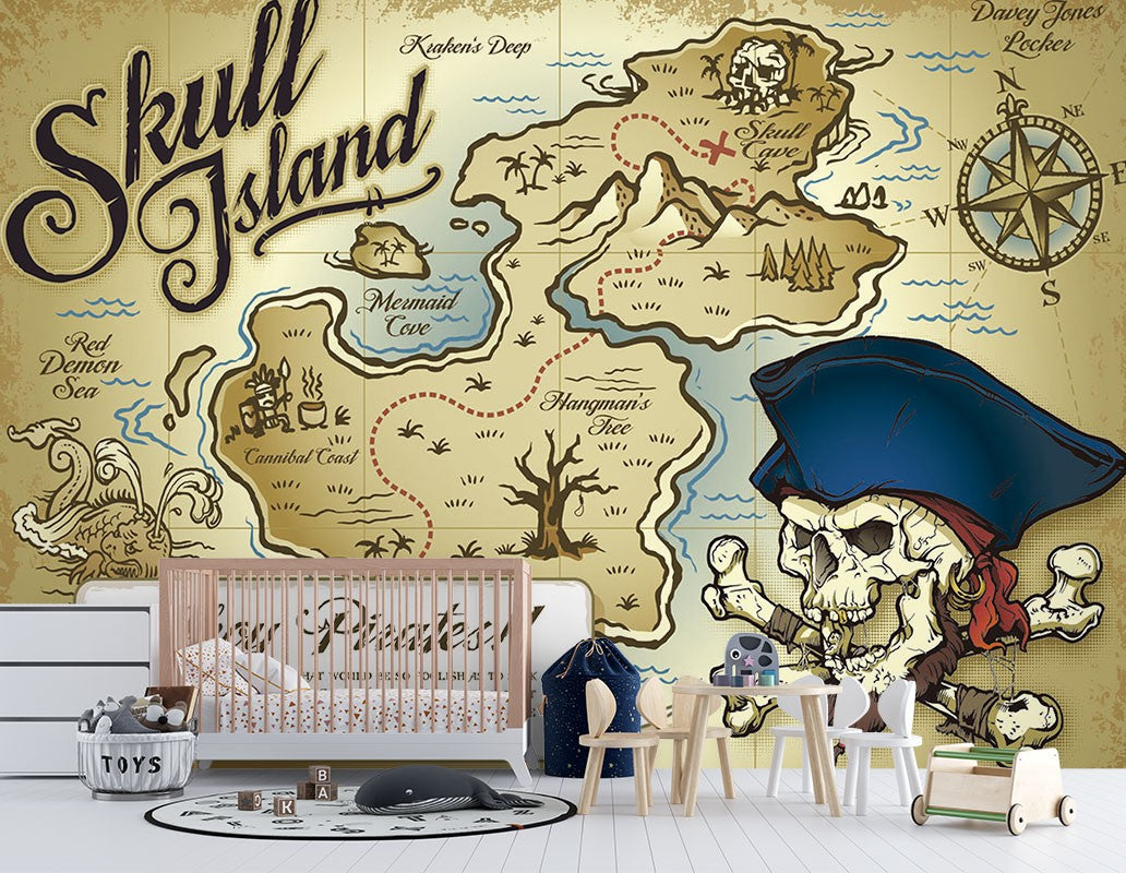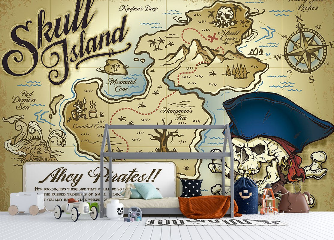 Treasure Map Kids Fantasy Brown Wallpaper Mural,Self-Adhesive Peel And Stick 3D Wall Decor,Designer Removable Wall Decor