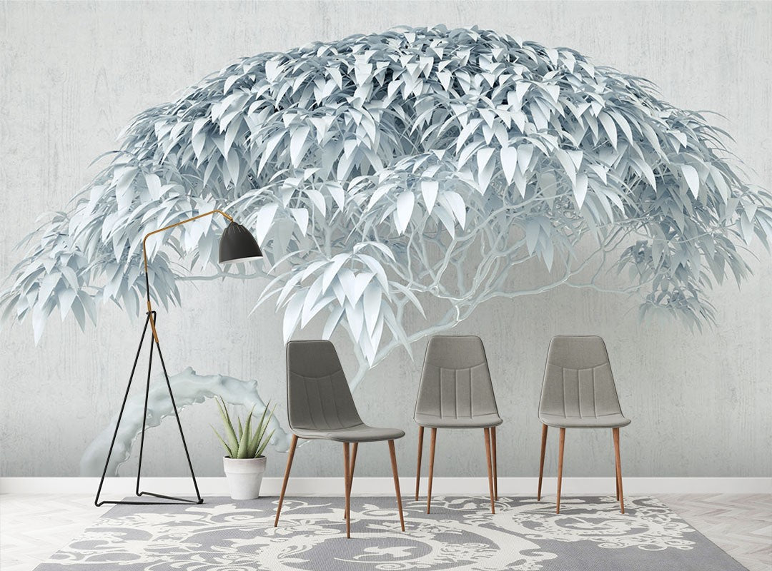 Tree Art 3D Gray Wallpaper Mural,Self-Adhesive Peel And Stick 3D Wall Decal,Removable Australian Company Wall Decor