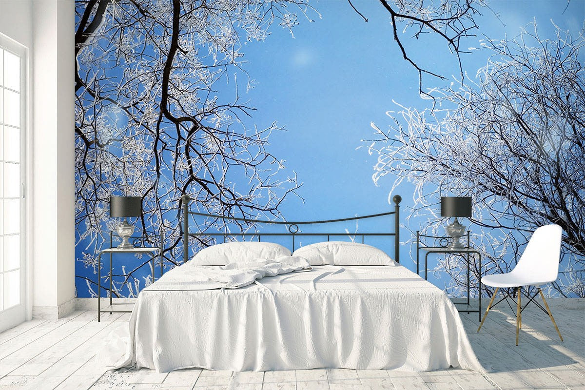 Tree Branch Floral Leaves Blue Wallpaper Mural,Self-Adhesive Peel And Stick 3D Wall Paper,Designer Bedroom Wall Decor