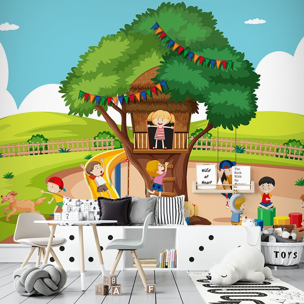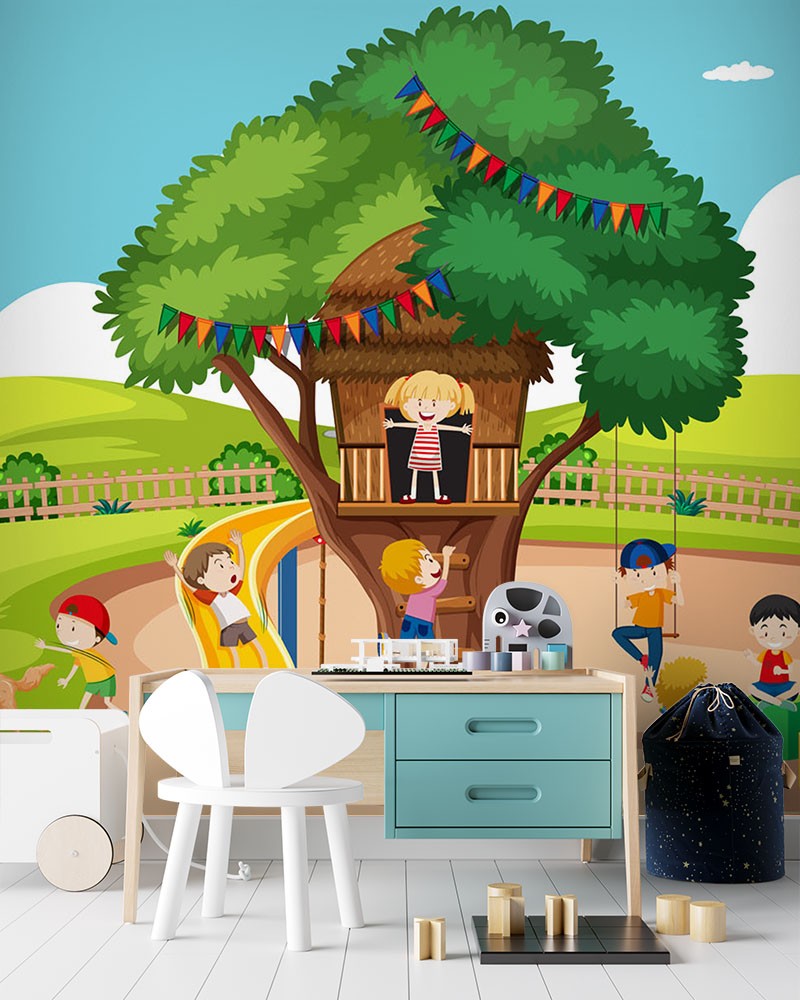 Tree House Kids Art For Kids Green Wallpaper Mural,Self-Adhesive Peel And Stick 3D Wall Art,Removable Australian Company Wall Decor