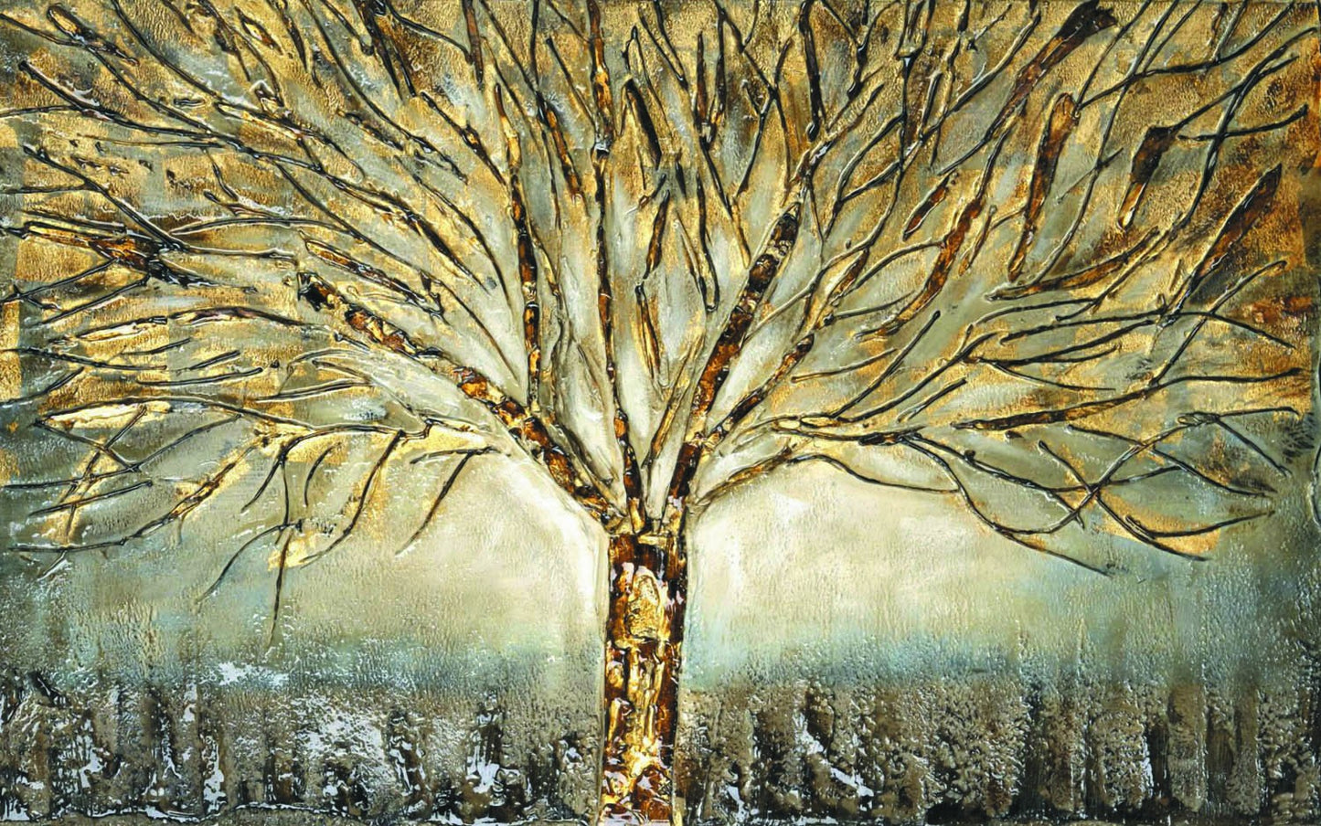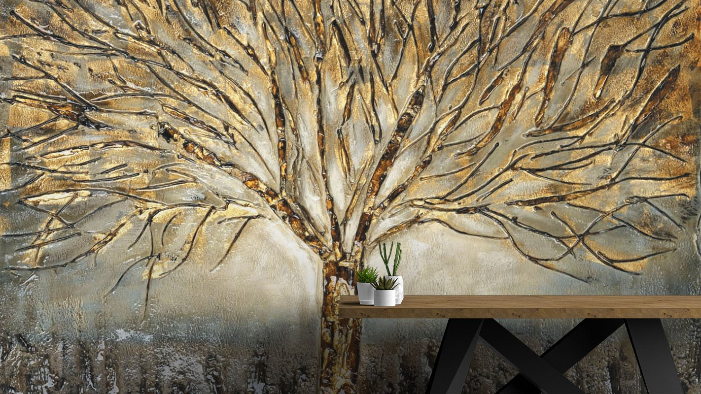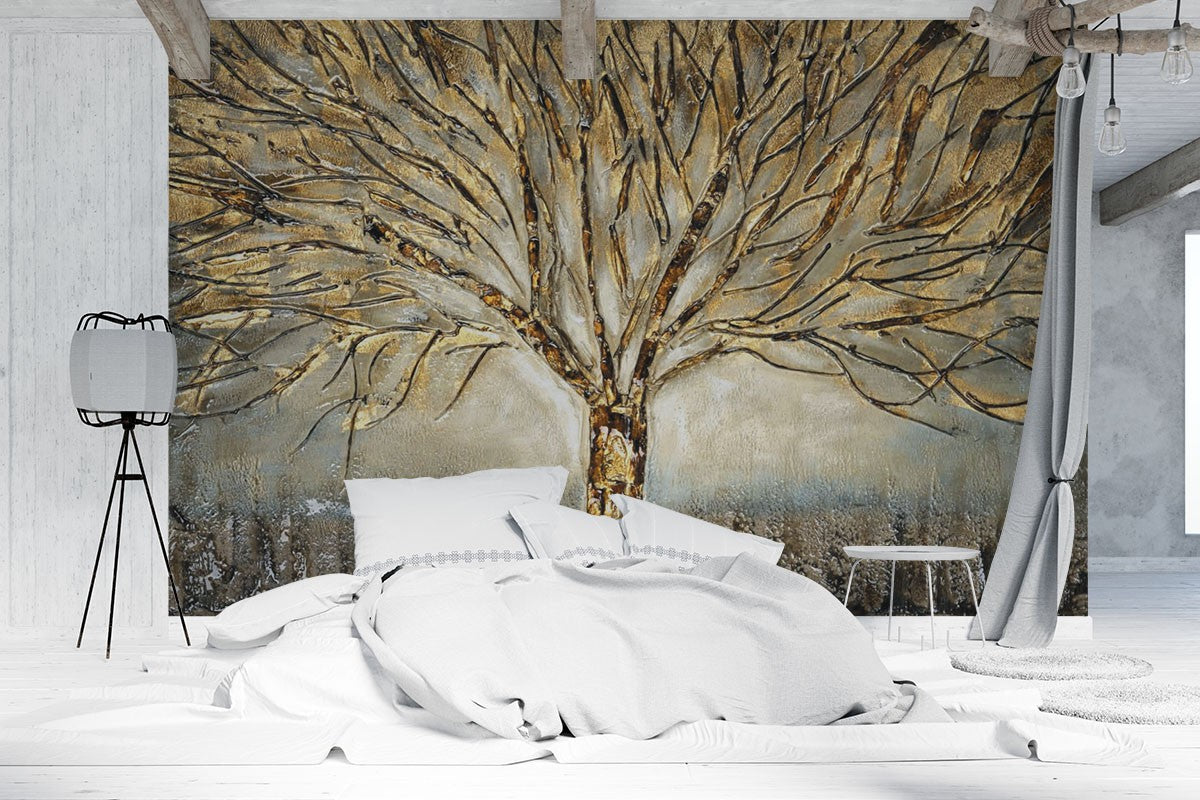 Tree Paint Art Fantasy Gold Wallpaper Mural