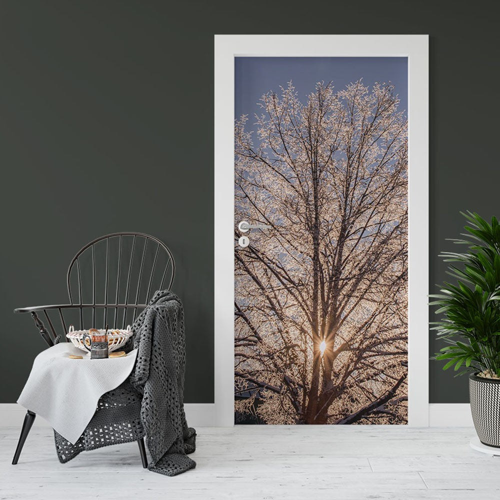 Tree Sunrise Forest Plant Door Wrap, Customized Mural For Door, Door Mural Sticker, Peel And Stick Door Cover, Removable Door Decal