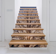 Tree Sunrise Forest Plant Gold Stair Riser Decals, Waterproof Removable Staircase Decals, Vinyl Peel And Stick Stairs Decal Stickers