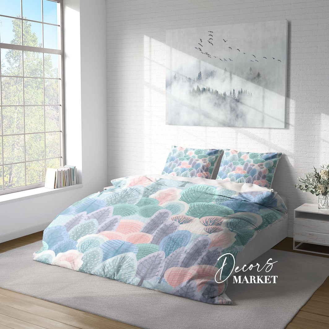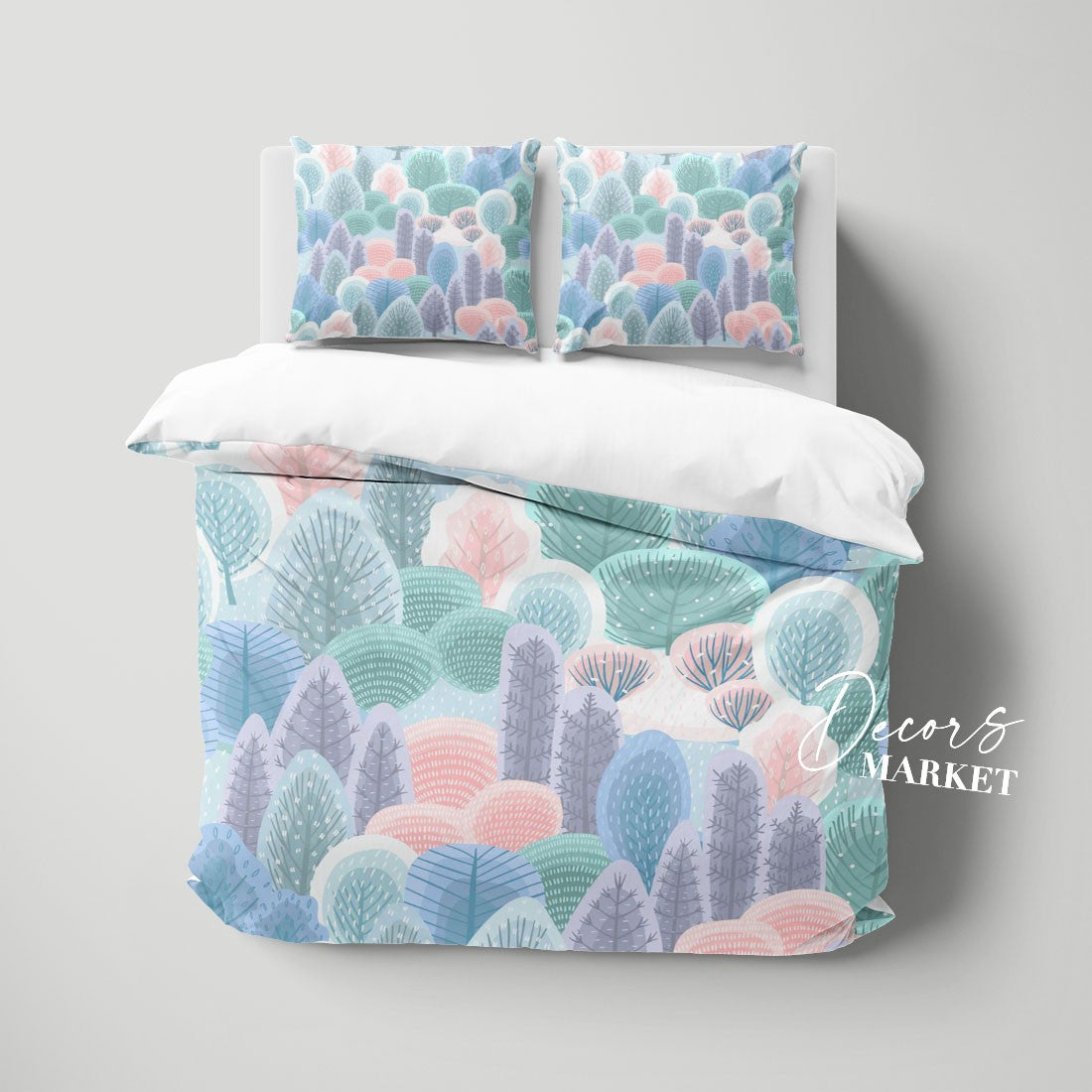 Tree Textile Watercolor Duvet Cover Set w Pillowcases, Blue Texture Patterns 3D Quilt Cover, 3pc Single Double Queen King Size Doona Cover