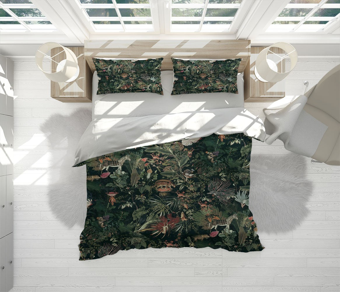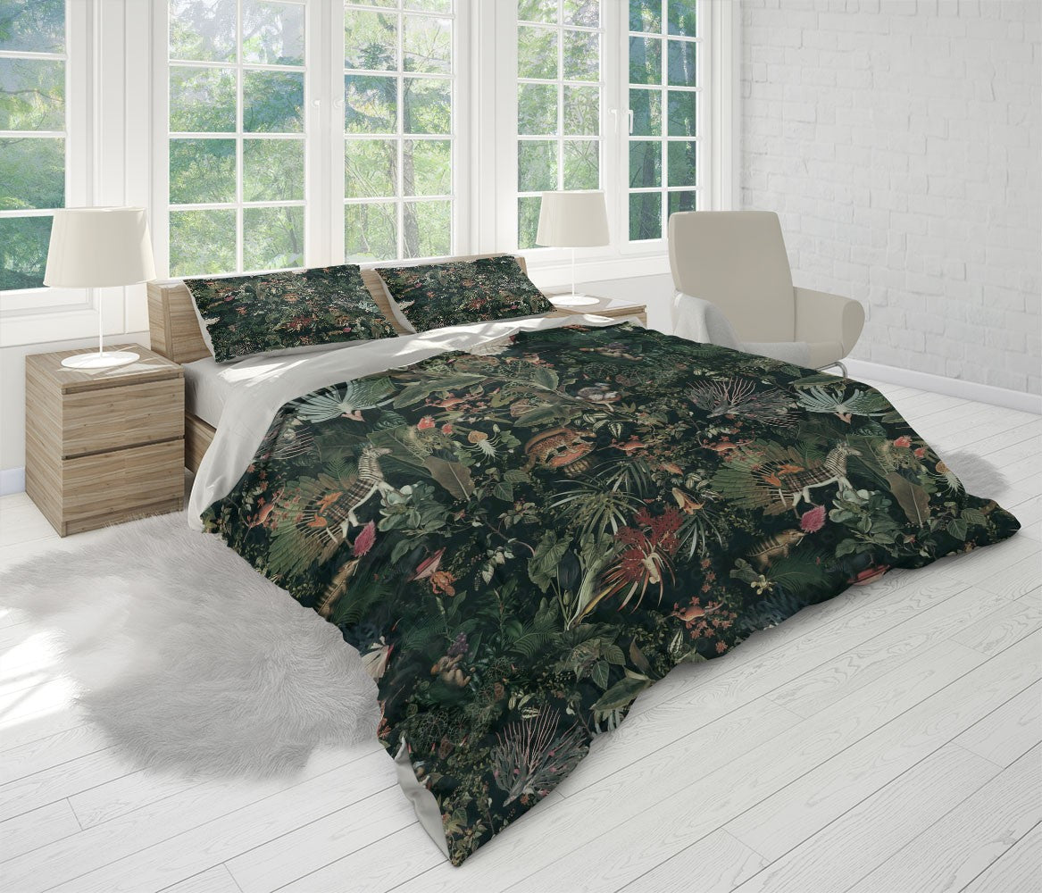 Trees Crane Forest Green 3D Duvet Cover Set W Pillow Cover, Single Double Queen King Size, Printed Cotton Quilt Doona Cover 3 Pcs