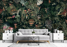 Enchanted Jungle Mosaic Wallpaper Mural, Trees Crane Forest Green Wall Decal, Self-Adhesive Peel And Stick 3D Wall Decal, Bedroom Removable Wall Decor