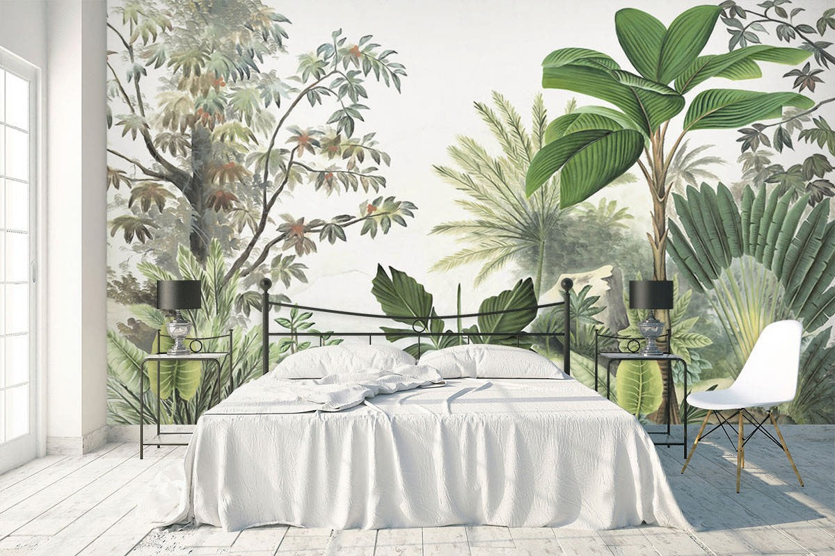 Trees Forest Jungle Green Wallpaper Mural,Self-Adhesive Peel And Stick 3D Wall Decor,Designer Removable Wall Decor