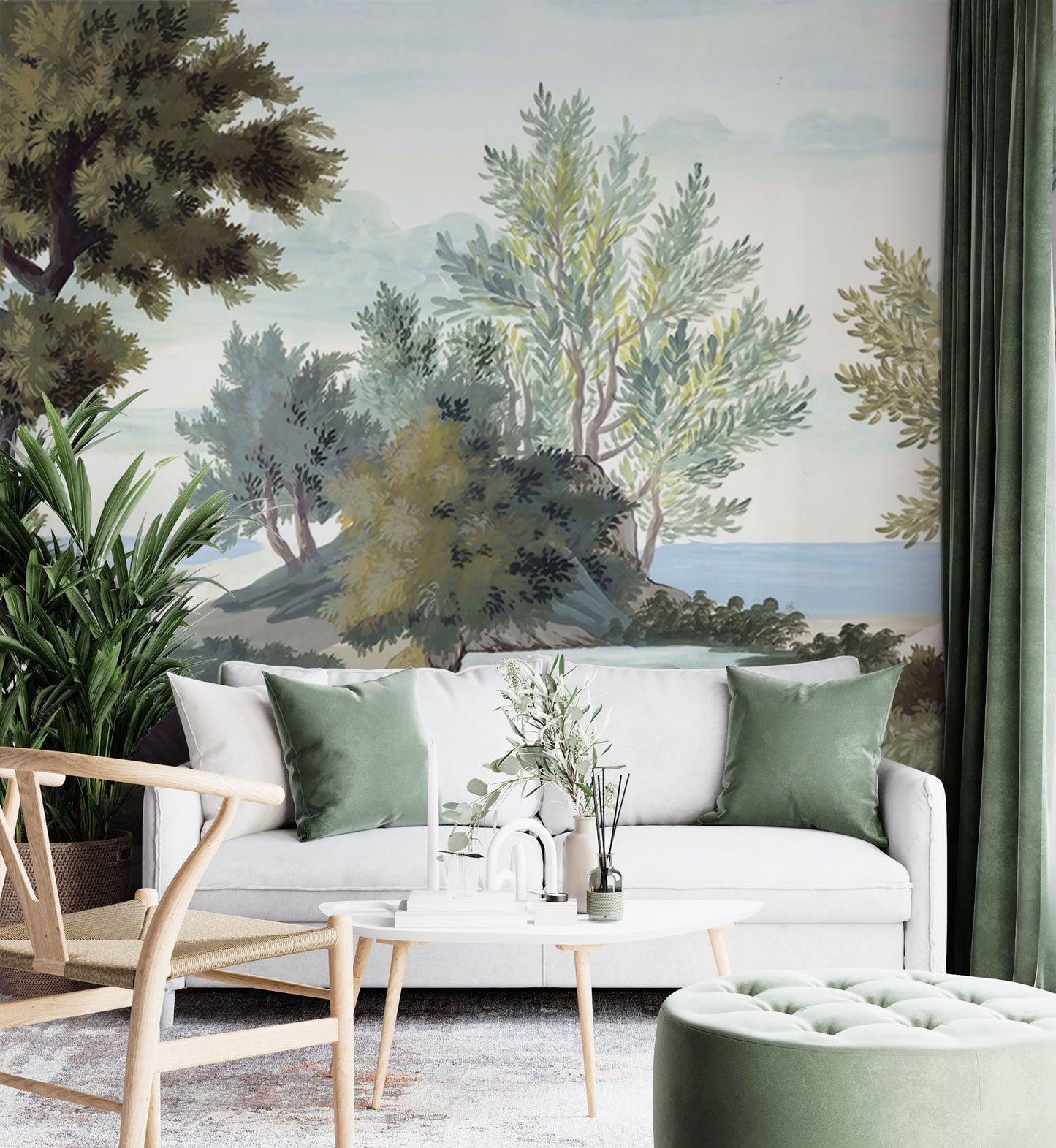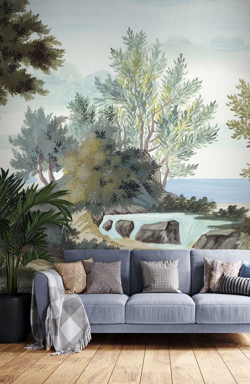 Trees Painting Forest Green Wallpaper Mural